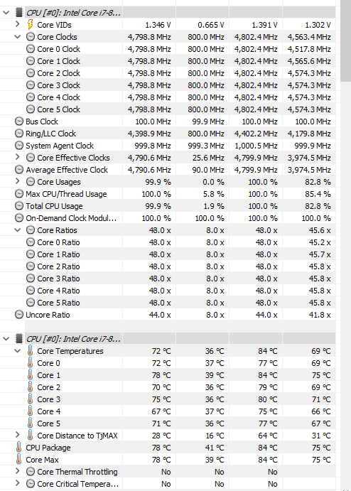 Frage 2: Angenommen ich takte auf 4.8Ghz(sync all cores), 1.28V(manuell) temps bei zocken etwa bis 75° max, wieso läuft die cpu die meiste Zeit auf nur 4.5Ghz?