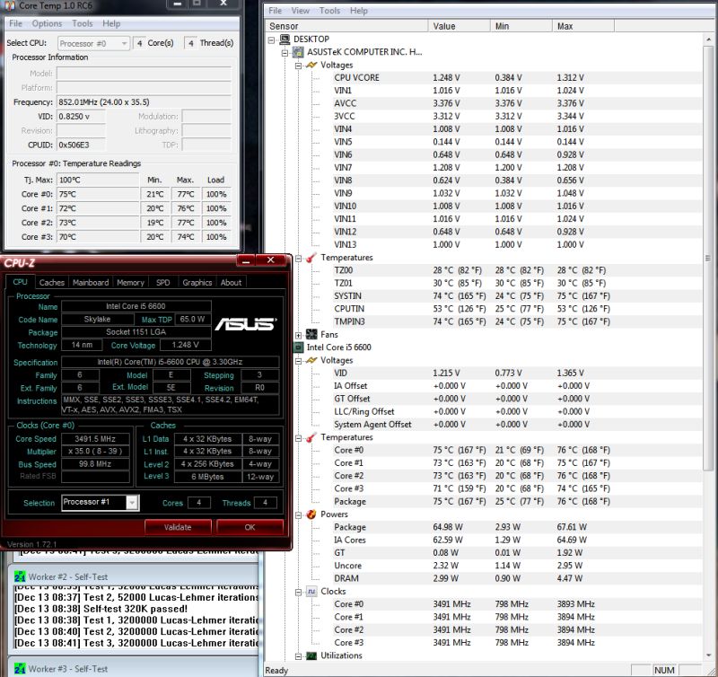 Als ultinativen Hitze Test habe ich Prime 95 angeworfen und dei Temp mit Coretemp im Augebehalten und ein programm das bei dem rechner dabei war Msi CommandCenter.