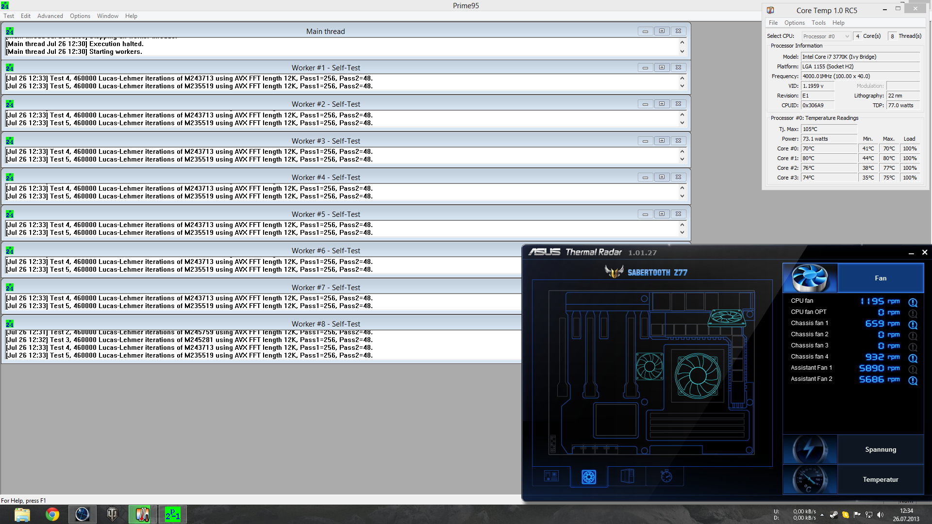 Mainboard: Asus Sabertooth Z77 (beide "Assistant"Fans installiert als intake)