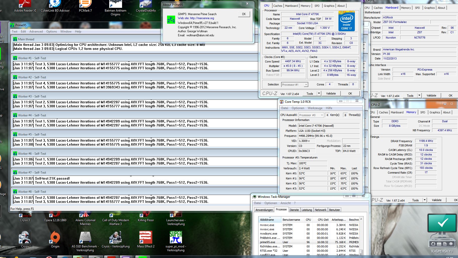 Anbei ein Screen über prime95, Vers. 27.9, build1, rund 16 h CPU-Zeit. Der 1344er Rund war dabei.