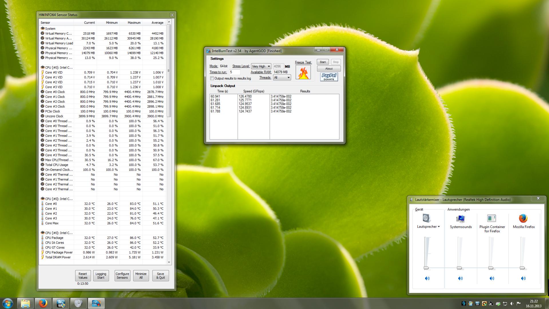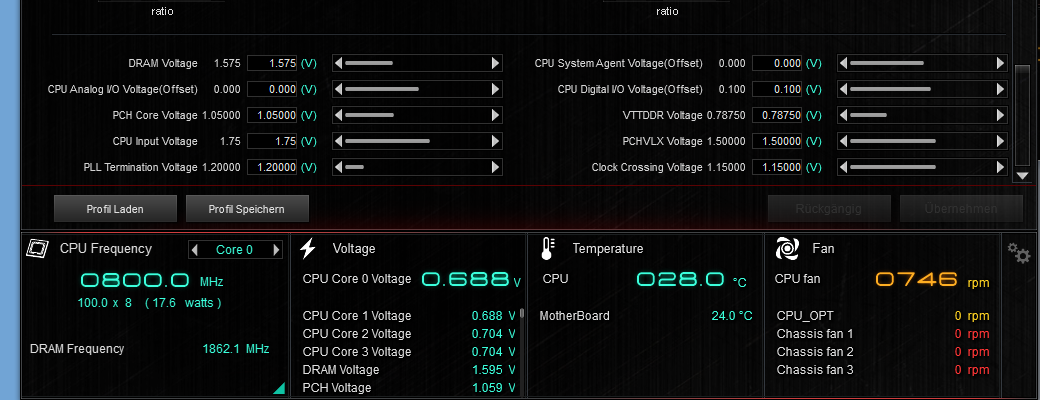 Habe mal unten alle Spannungen im Screenshot hochgeladen. Evtl. kann jemand von euch, der etwas Haswell-affiner ist (hatte vorher noch einen AM3 X4...) mal einen Blick drauf werfen, was ok ist, was besser gemacht werden könnte, was bedenklich ist