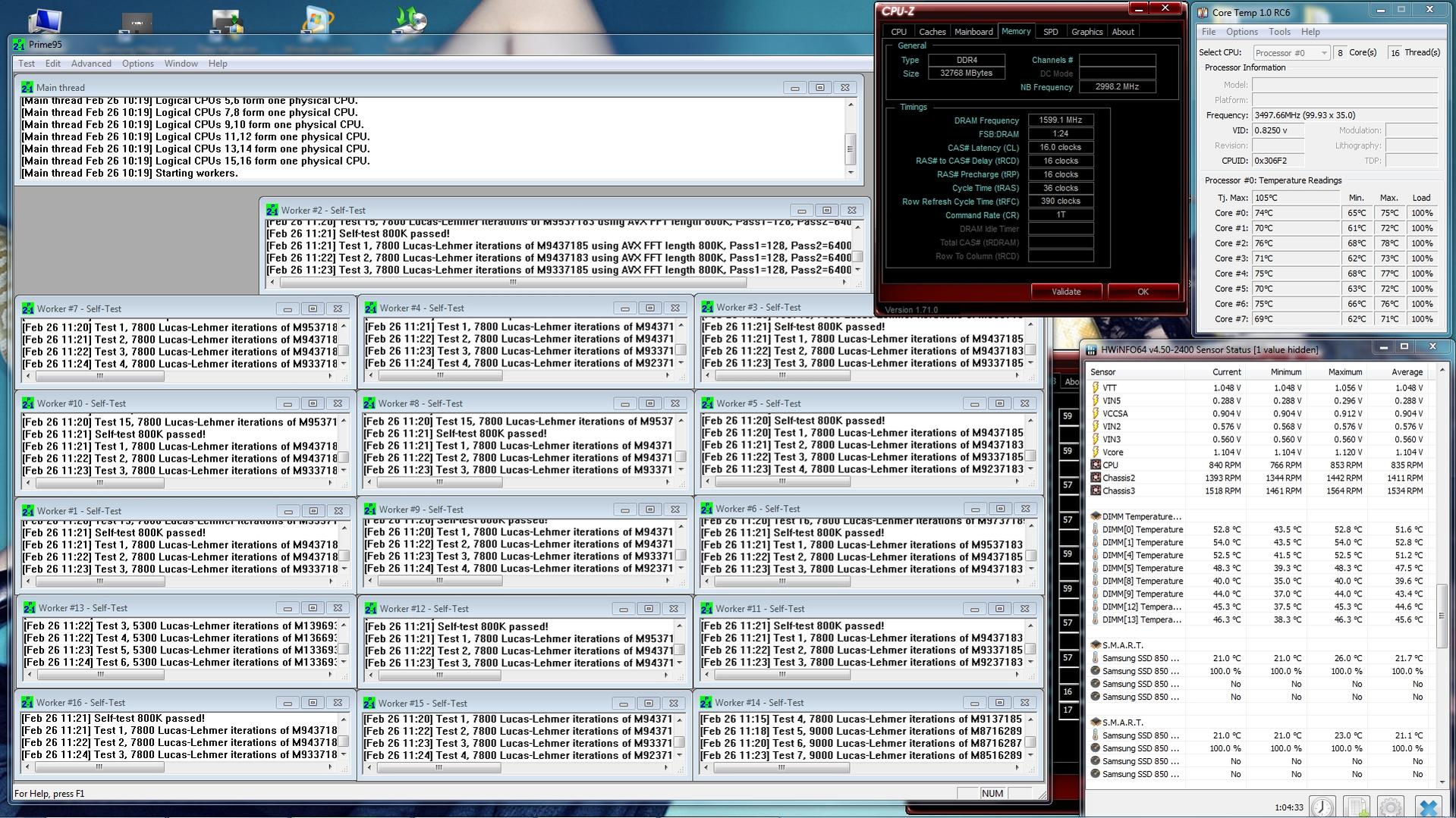 V-Dimm bin ich jetzt schon bei 1.395V, höher will ich nicht gehen.