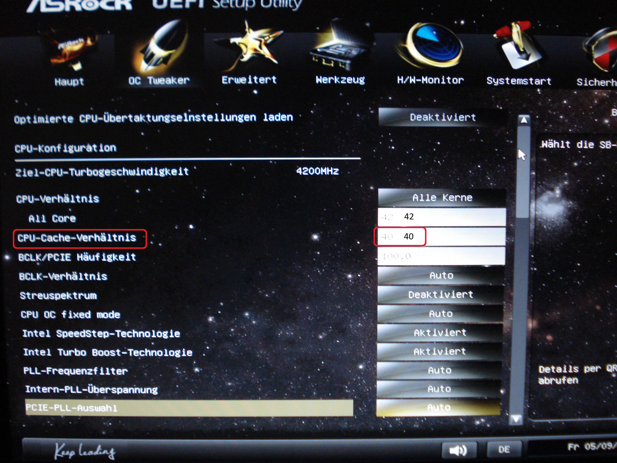 CPU-Cache Spannungoffset = auto (hier hatte ich auch mal 0,050v drin aber das hatte keine wirklich Änderung bewirkt)