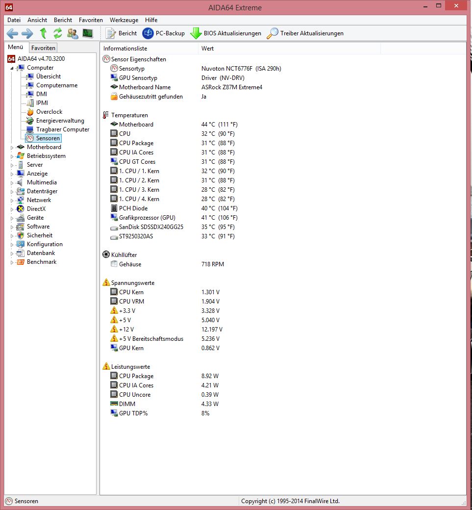 Sind diese Werte normal? Mir kommt die Temperatur und der VCore extrem hoch und gleichzeitig die angezeigte CPU-Voltage im BIOS mit ~1,0V viel zu niedrig für den 4790K vor.