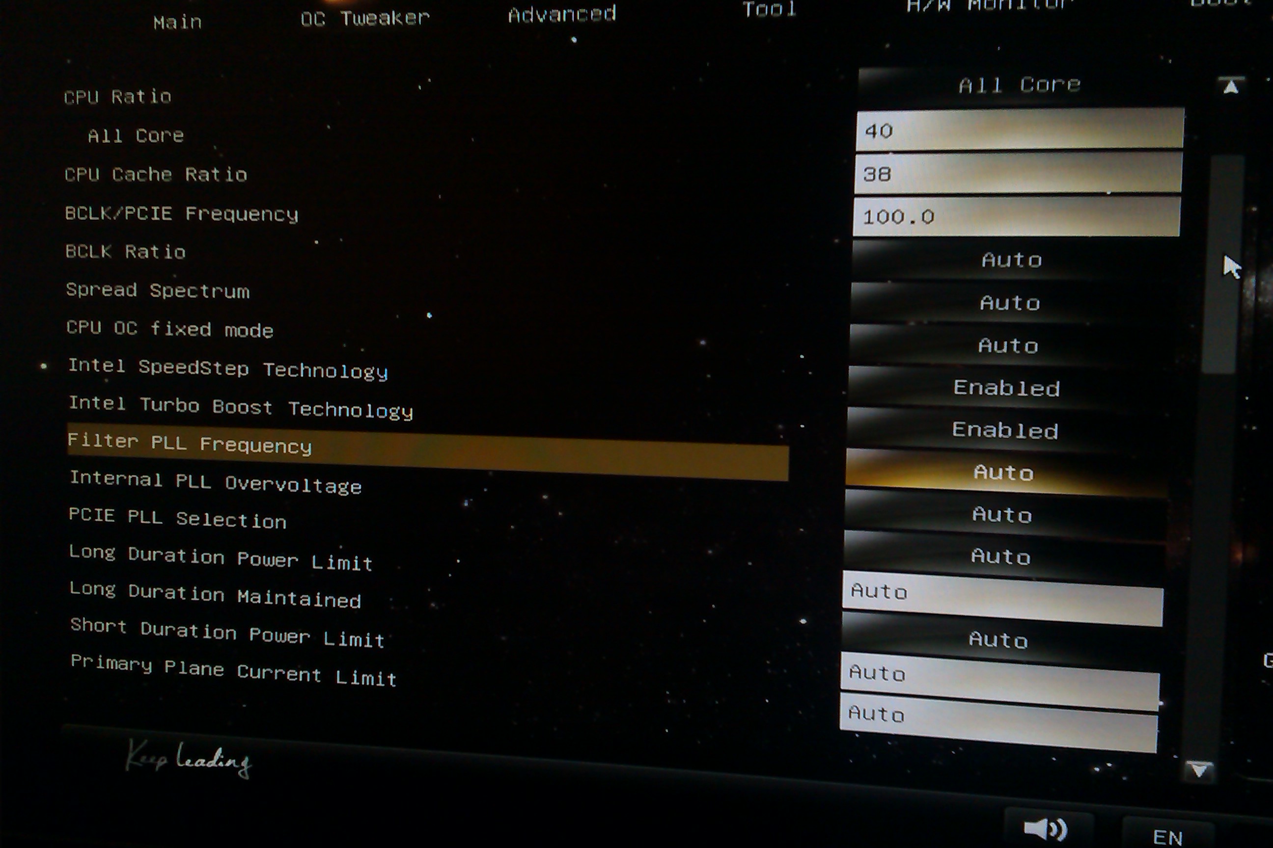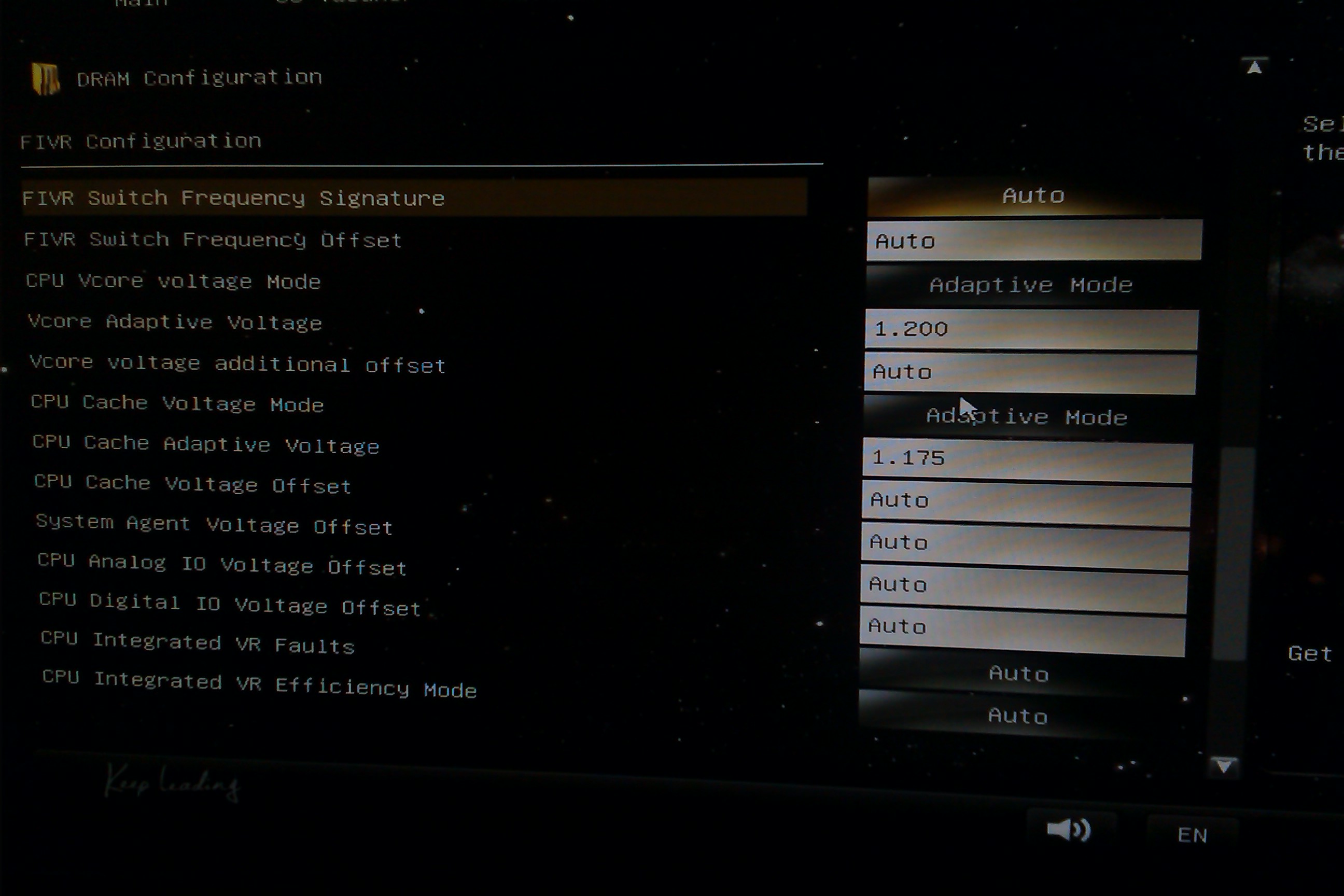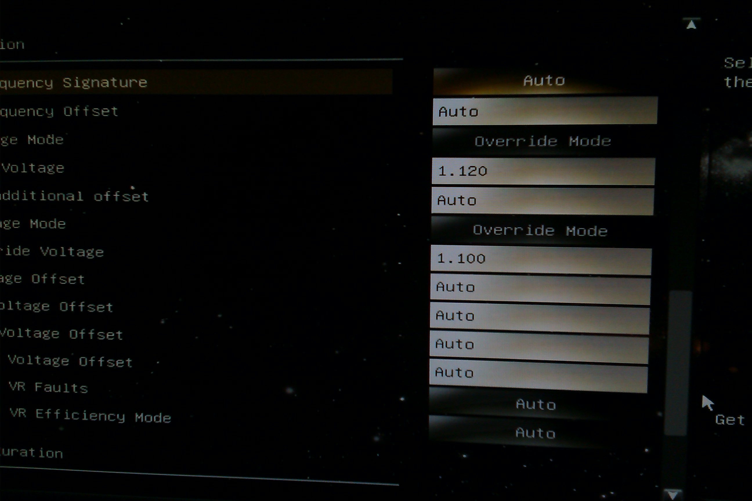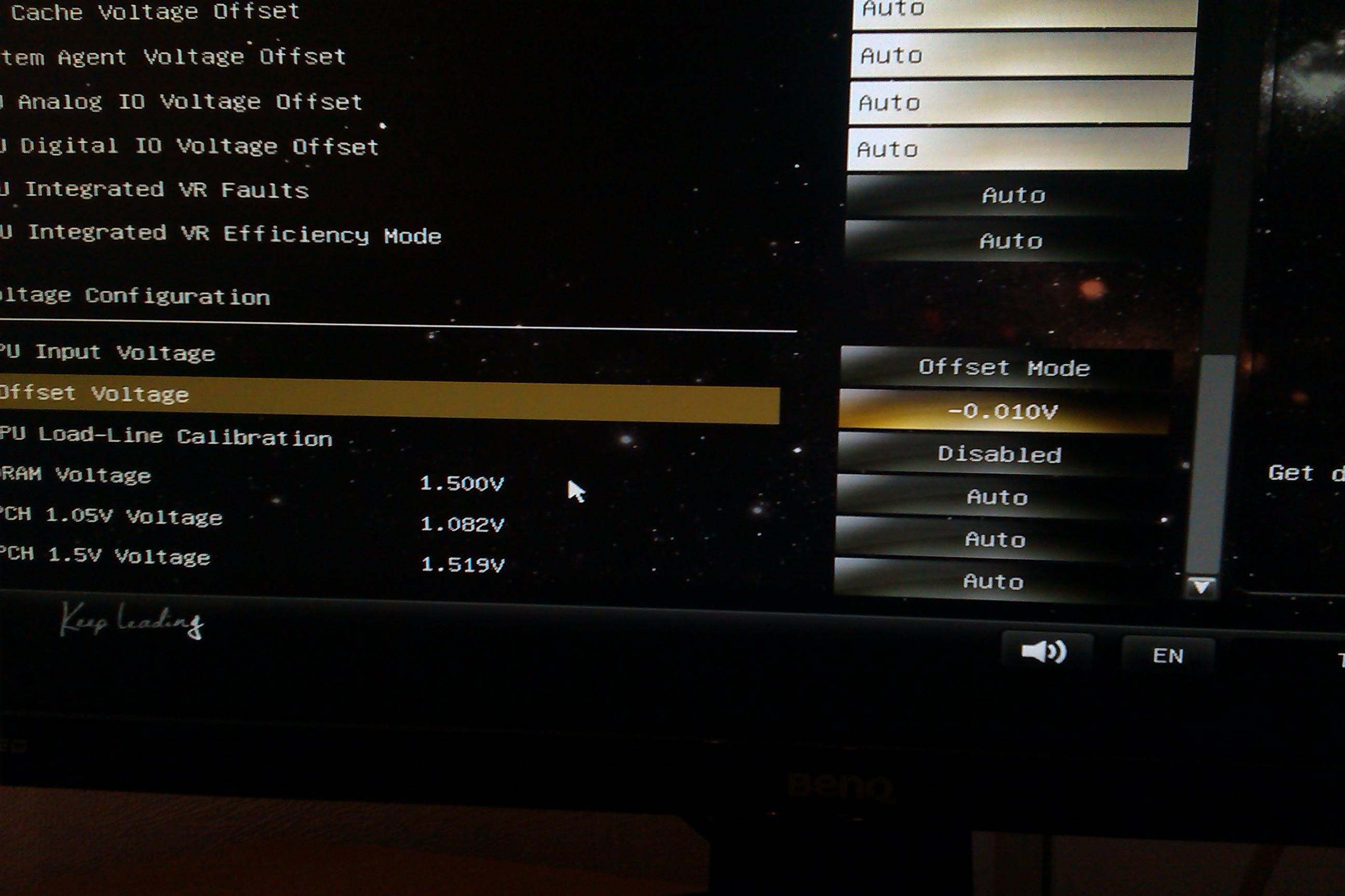 Was bedeutet AVX? Und ob ich nun eine Spannung bei 'vcore override voltage' eingebe oder nicht, es ändert sich dann nichts, wenn ich bei CPU-Z schaue, genau wie auch beim Adaptive mode, ich kann dort eingeben was ich möchte, beim Override mode ist die Spannung dann in CPU-Z bei 1.101V unter last als auch im idle - beim Adaptive mode ist sie schon bei 1.199V im idle und unter last sogar ganze 1.273V, was deutlich zuviel ist. Ich weiß leider nicht, was ich ändern muss, damit ich die Spannung selbst ändern kann.