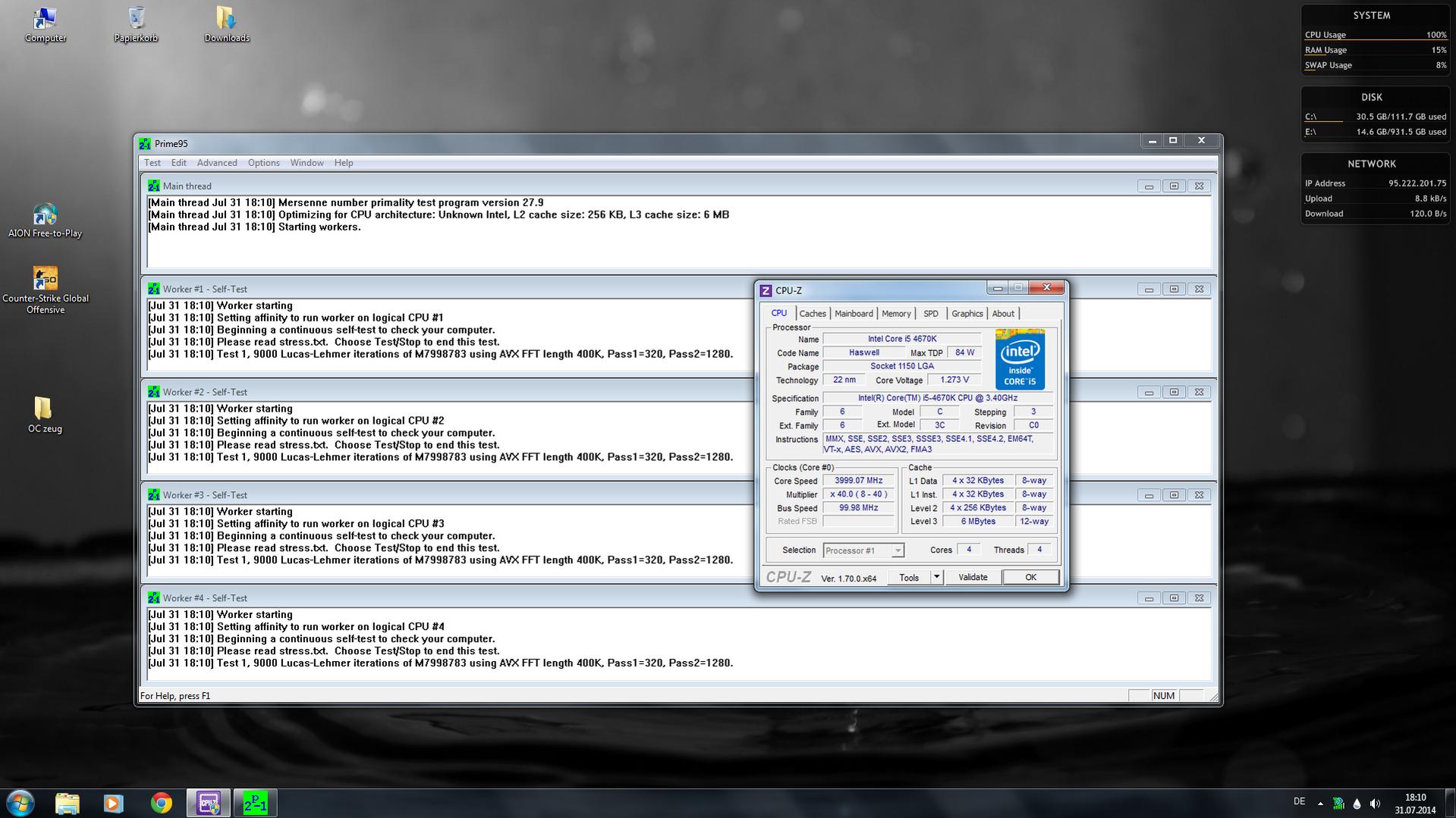 System: i5 4670k, Asrock z87-pro4, 8GB Corsair Vengeance LP, 120GB SSD, 1TB HDD, GTX 260², 500Watt OCZ
