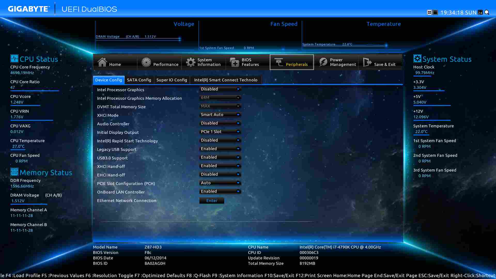 Mir ist noch aufgefallen das ich vergessen hatte die Ram Timings auf "normal" statt "enhanced" zu stellen, das hab ich grad verändert und den VCore wieder auf 1.243 V gestellt.