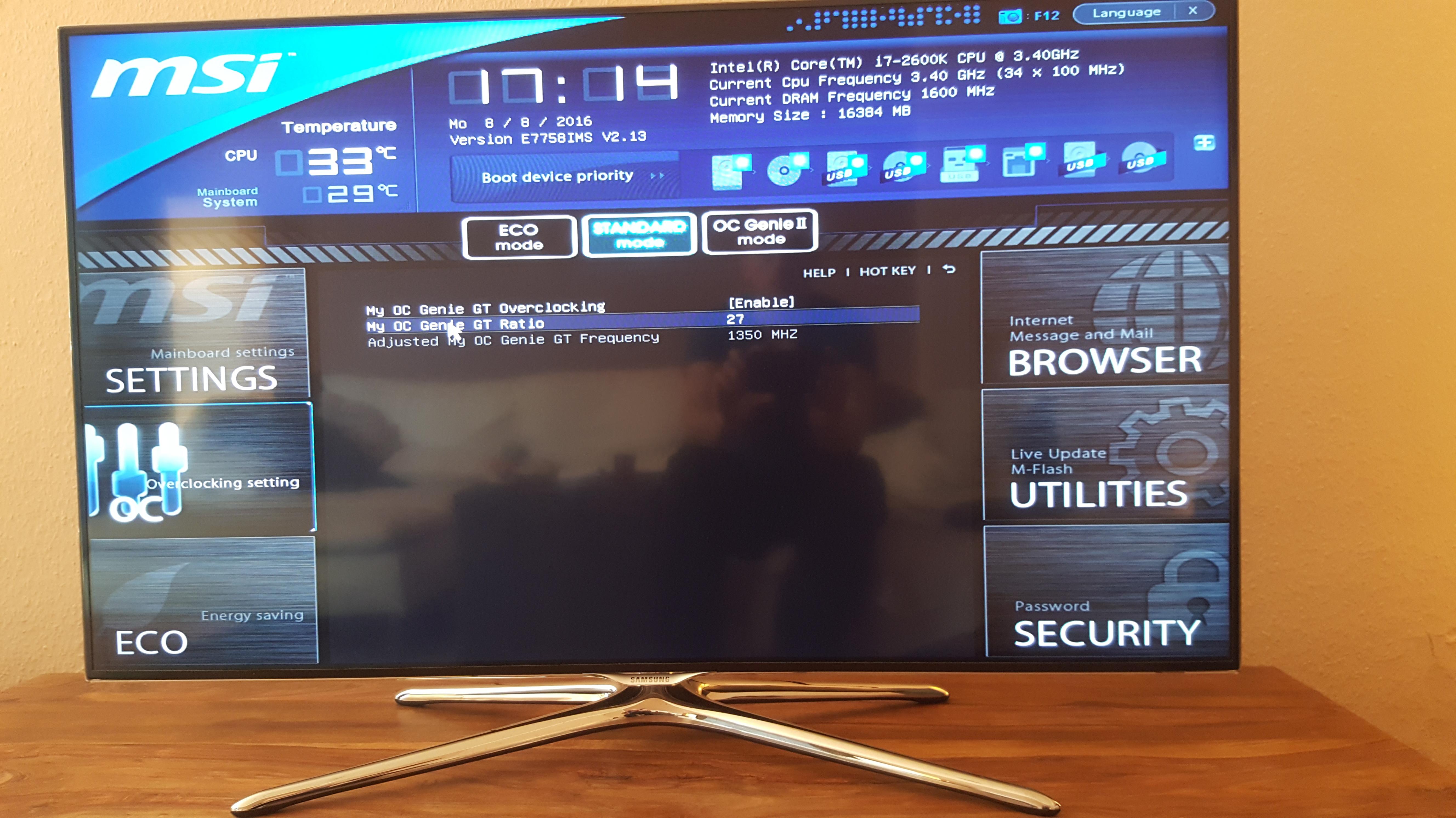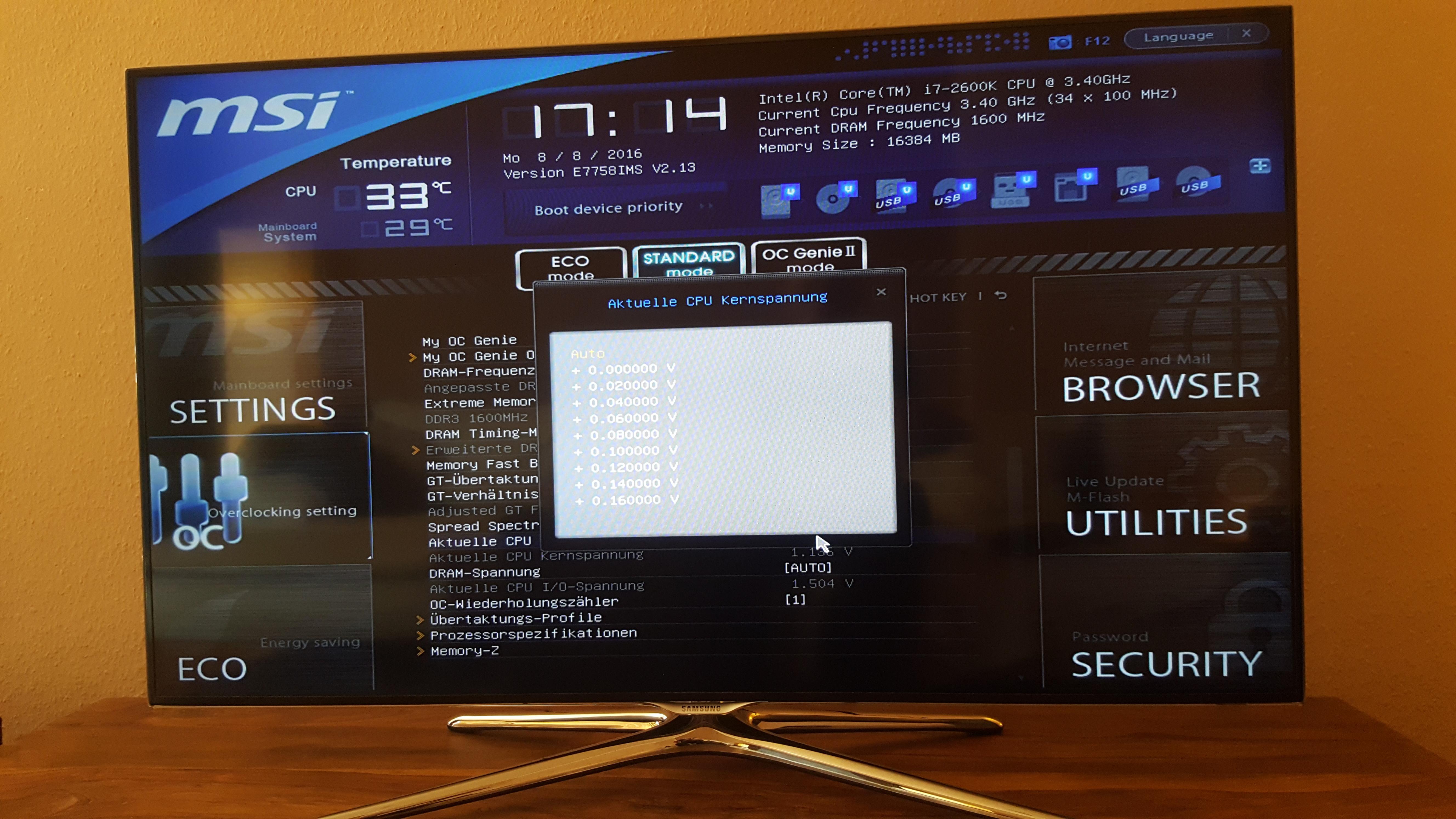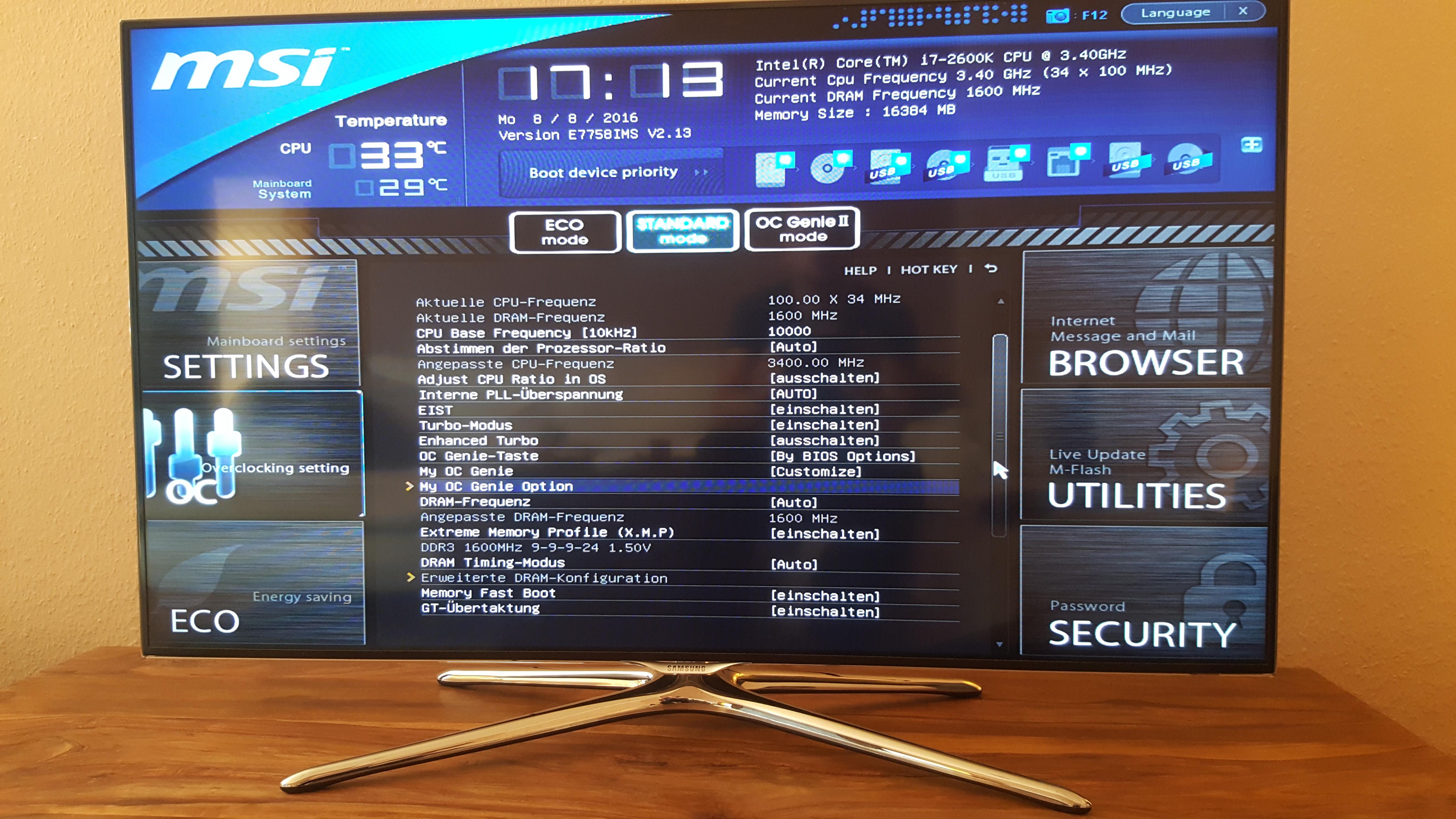 ) und Screenshots aus Windows. Das Windows Tool nennt sich Click Bios 2 und hat, und jetzt wirds spannend, andere bzw. mehr Einstellungsmöglichkeiten als mir im Bios direkt angezeigt werden. Dabei ist es unerheblich in welchem "Modus" ich mich im Bios befinde (Eco, Standard, OC Genie), die Einstellungsmöglichkeiten sind immer die gleichen. Unter Windows kann ich keinen Modus wechseln.