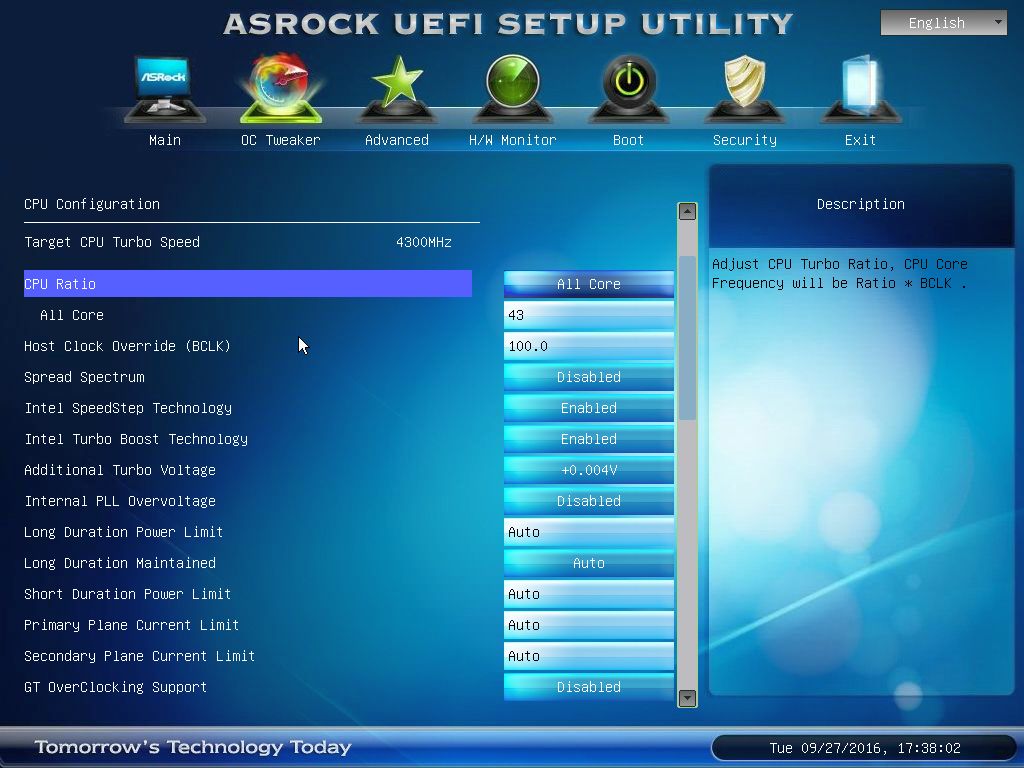 CPU Ratio habe ich auf Per Core gestellt, damit ich den Turbo Boost deaktivieren konnte.