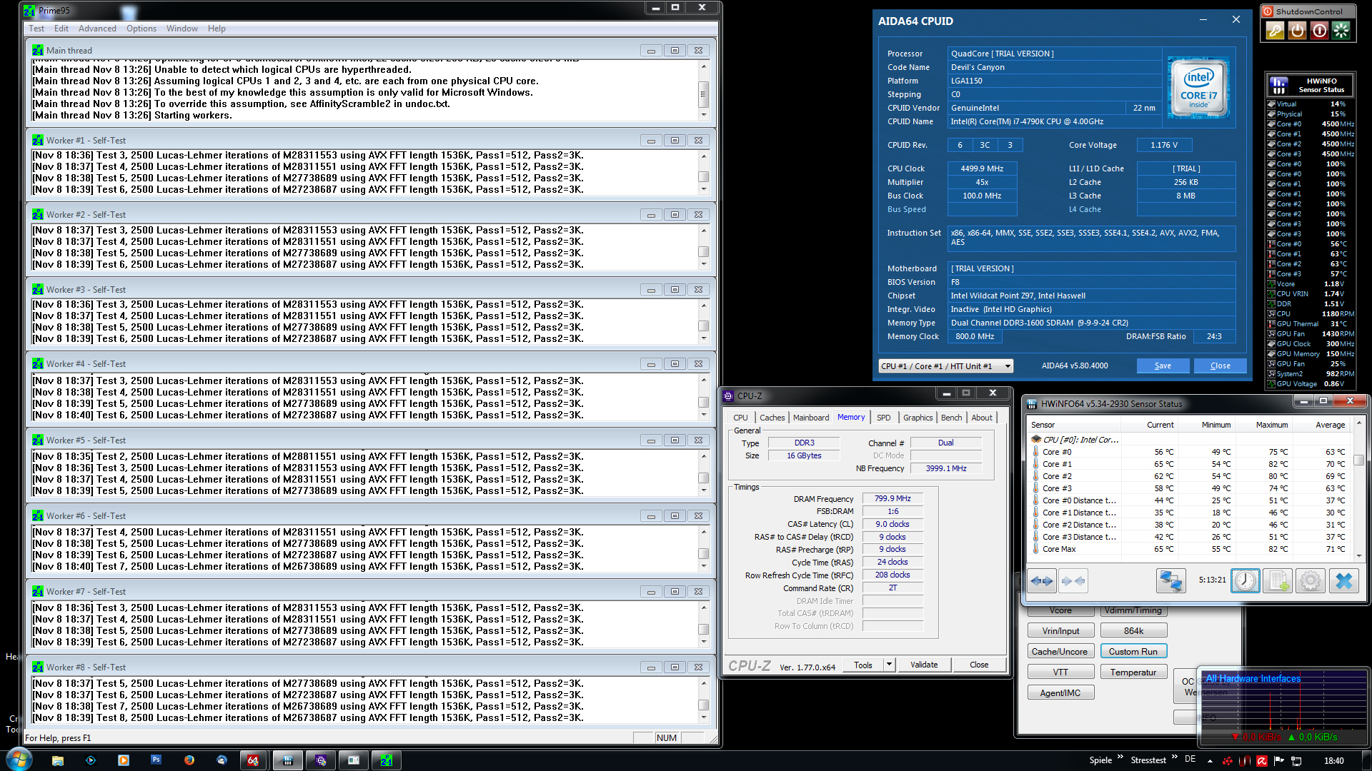 Und 4,5GHz scheinen bei 1,176V stabil zu sein: