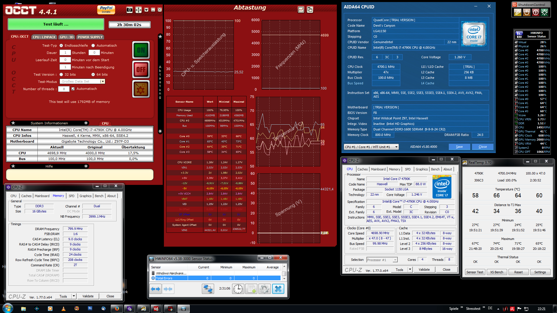 5.) Stabilitstätstest (Prime95, Cinebench R15)