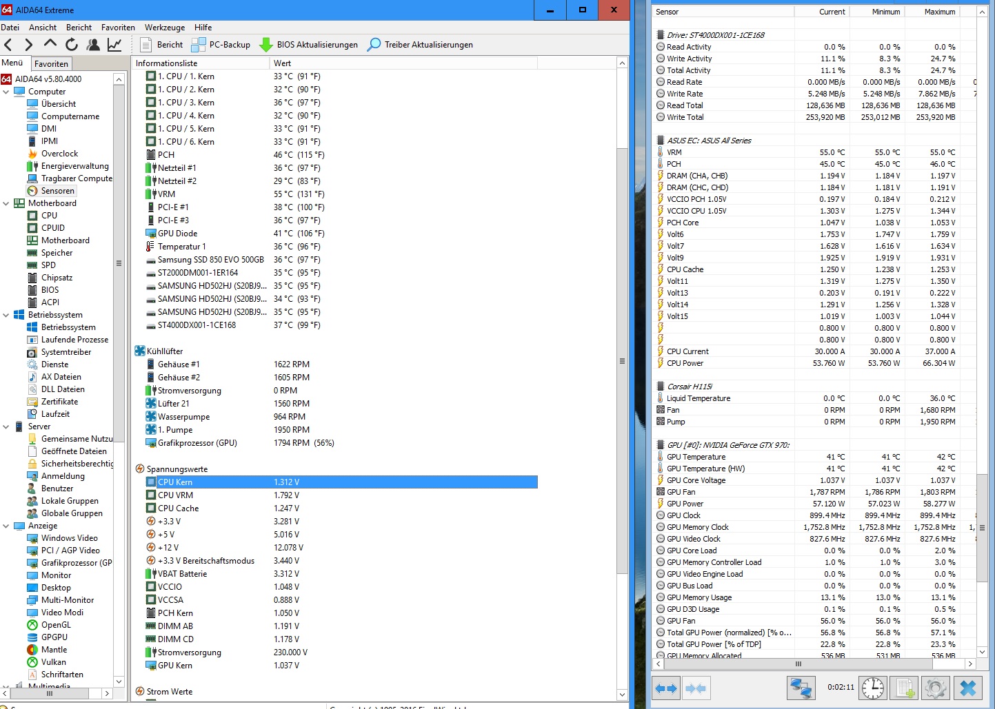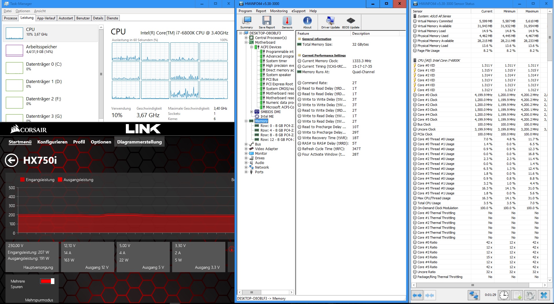 2.) In Windows mit CPU-Z (Core Voltage) Vcore im Idle (Ausbalanciert) und unter Last (Höchstleistung, x264 oder geht auch Cinebench R15/Prime 95?) ermitteln