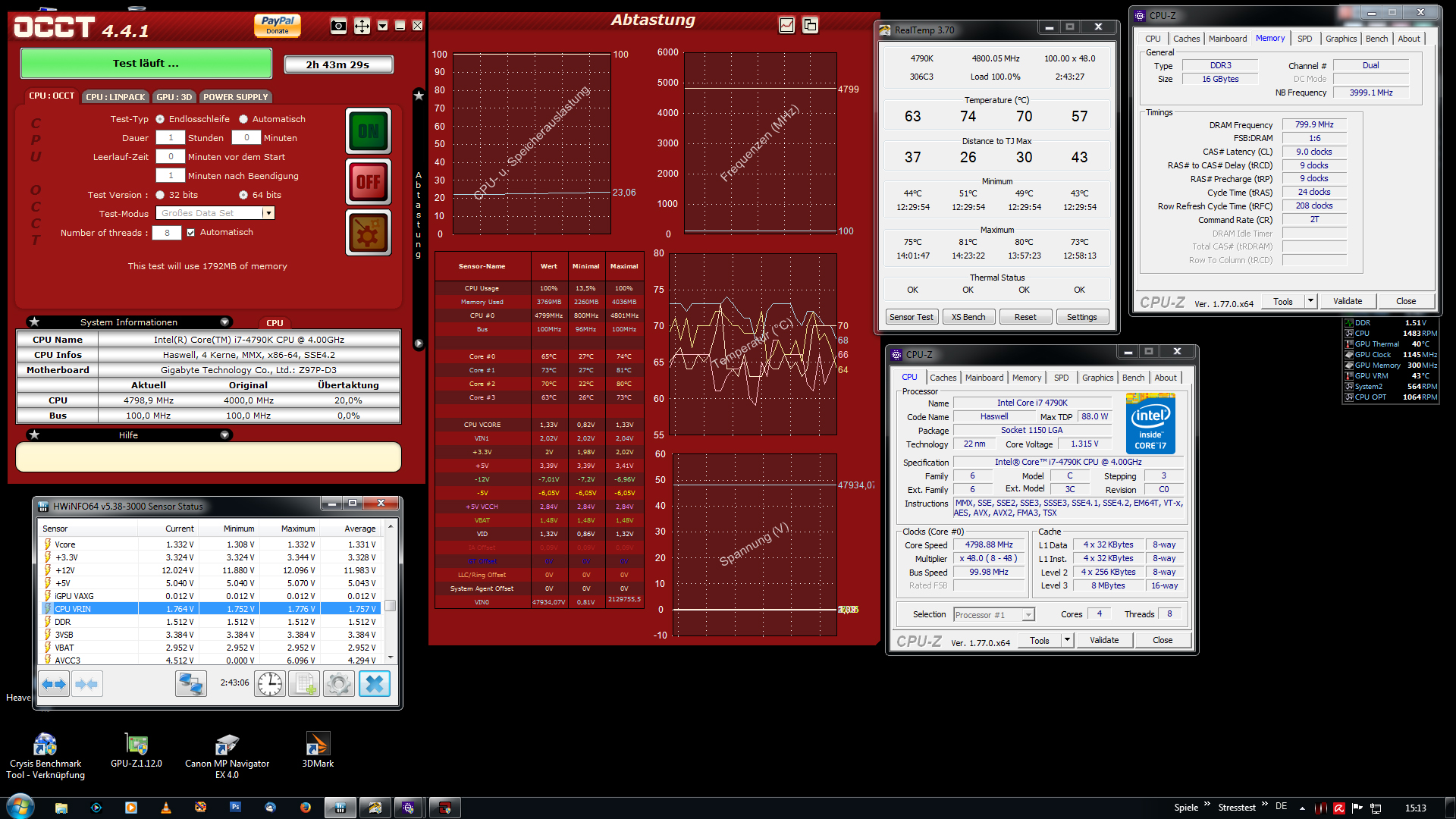 Die 4,8GHz habe ich zumindest im 864k Test (der ist a recht fordernd) für 60min stabil.