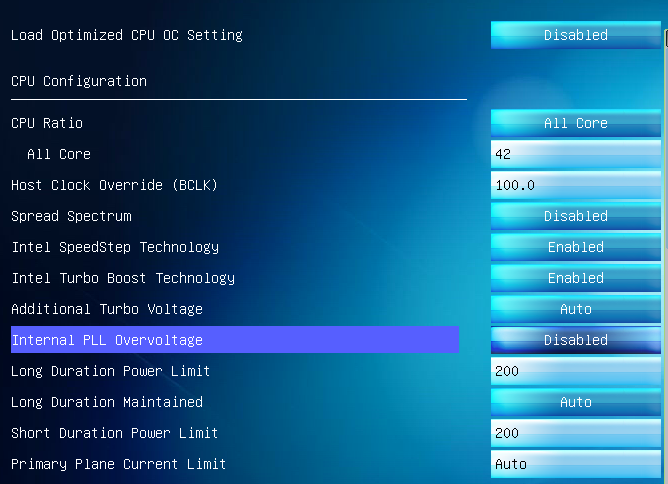CPU Core Voltage gehört (erstmal) auf Auto, LLC auf Level 0, die ist bei dir volles Brett drin (Level 5). Immer unter dem Vorbehalt, dass Level 0 = aus ist, das ist nicht auf allen Boards gegeben.