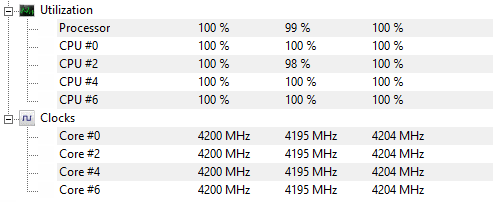 Nun habe ich eine Frage... ist das Normal das 2 Kerne für einen sehr kurzen Moment 98% / 99% anzeigen? ist das ein Zeichen dafür das es nicht Stabil läuft? Es lief sonst durchgehend bei allen kernen auf 100%..