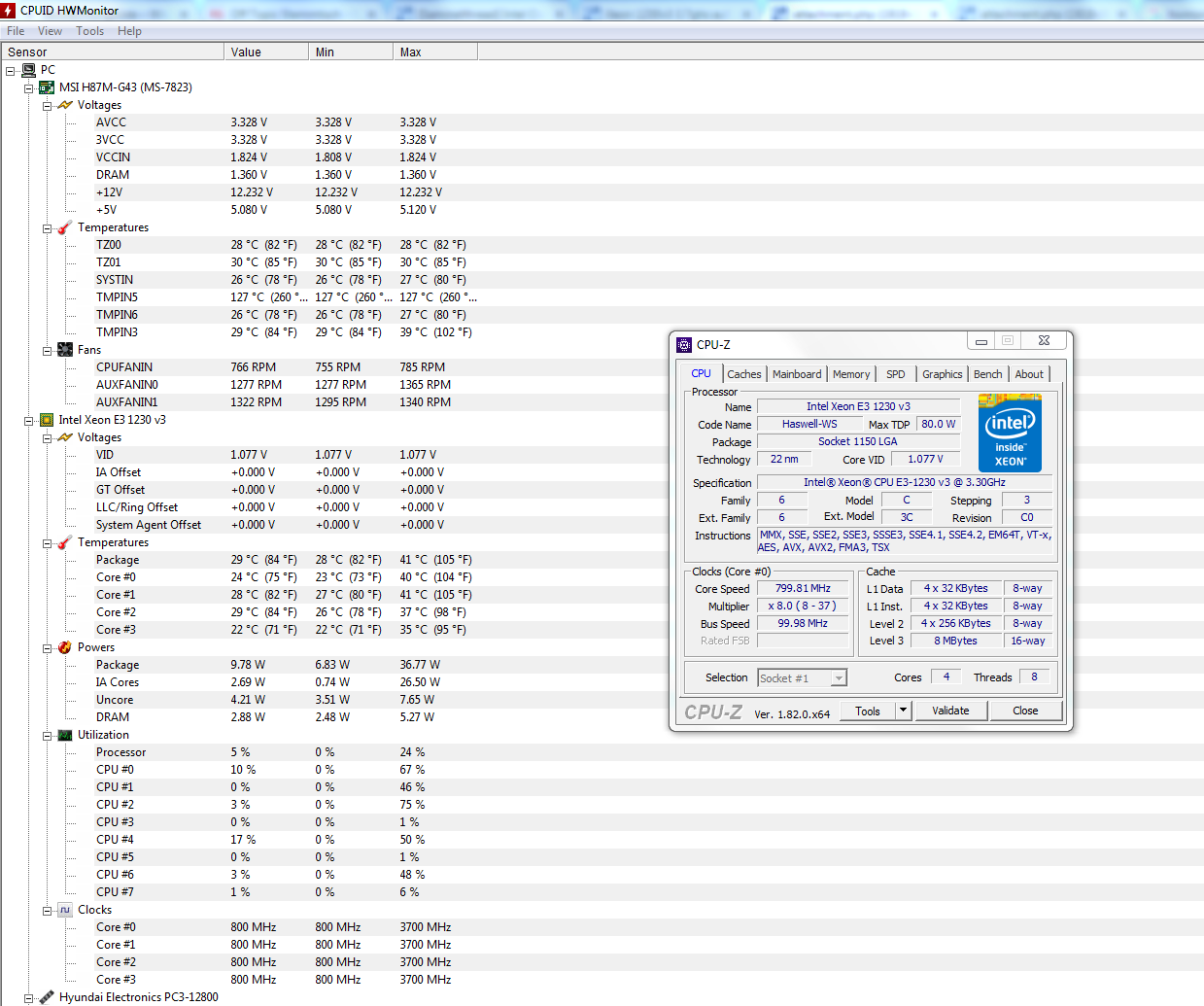 Hier sind die Bilder von CPU-Z , CoreTemp und HWInfo