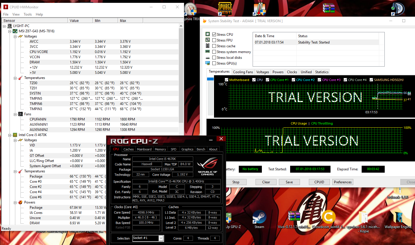 Aktuell werden mir bei Prime-Lauf in CPU-Z 1,204 Volt angezeigt. Ich glaube das ist weil ich im "Manuell"-Feld im BIOS 1,2 V eingestellt habe und dann den Offset-Modus (der steht aber auf 0,0 V aktuell, da es nur zum Testen war).