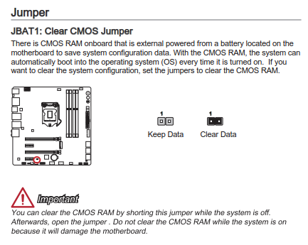 Da solltest du im Handbuch nachschlagen, wie du ein "BIOS Reset" durchführst