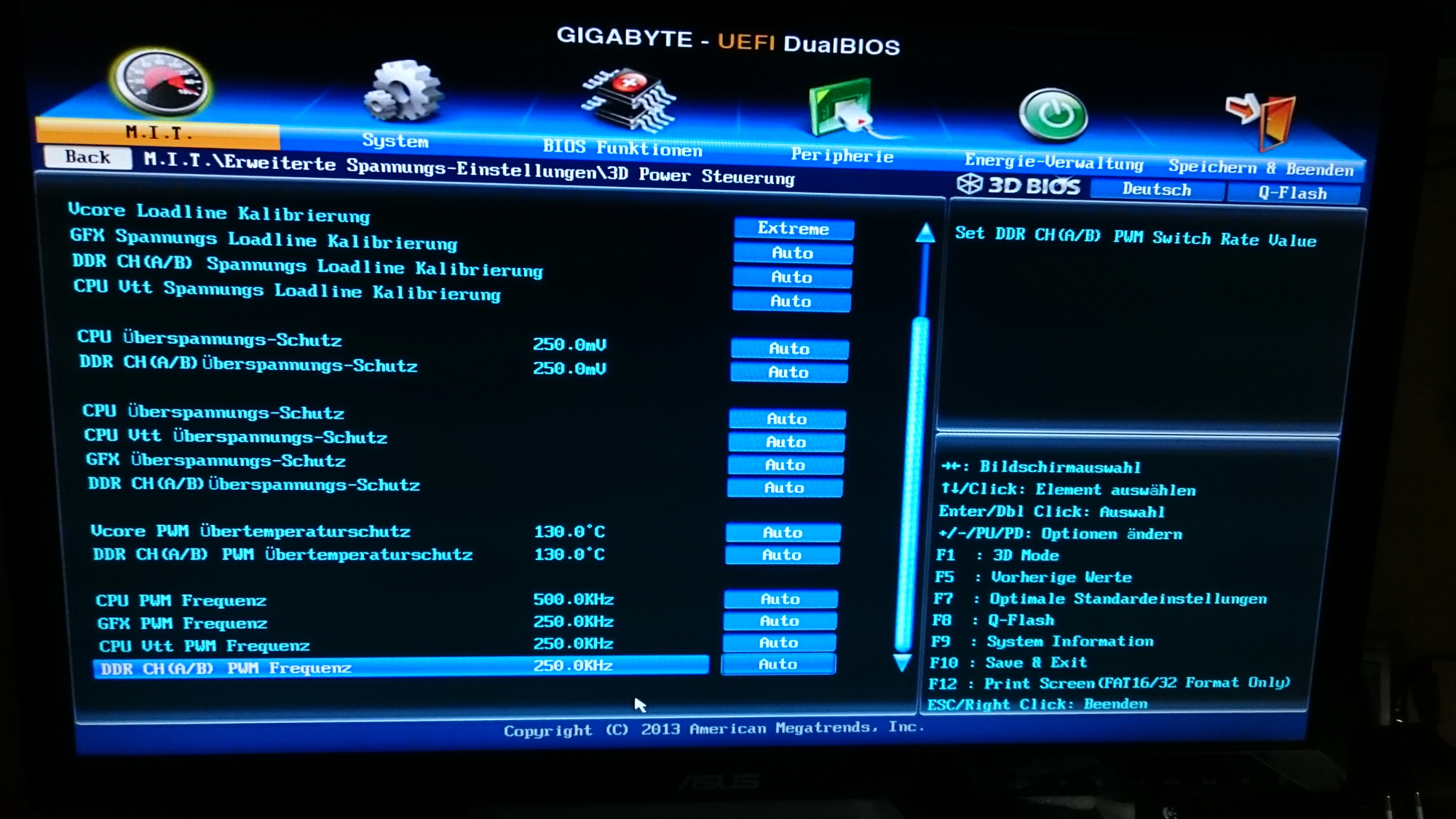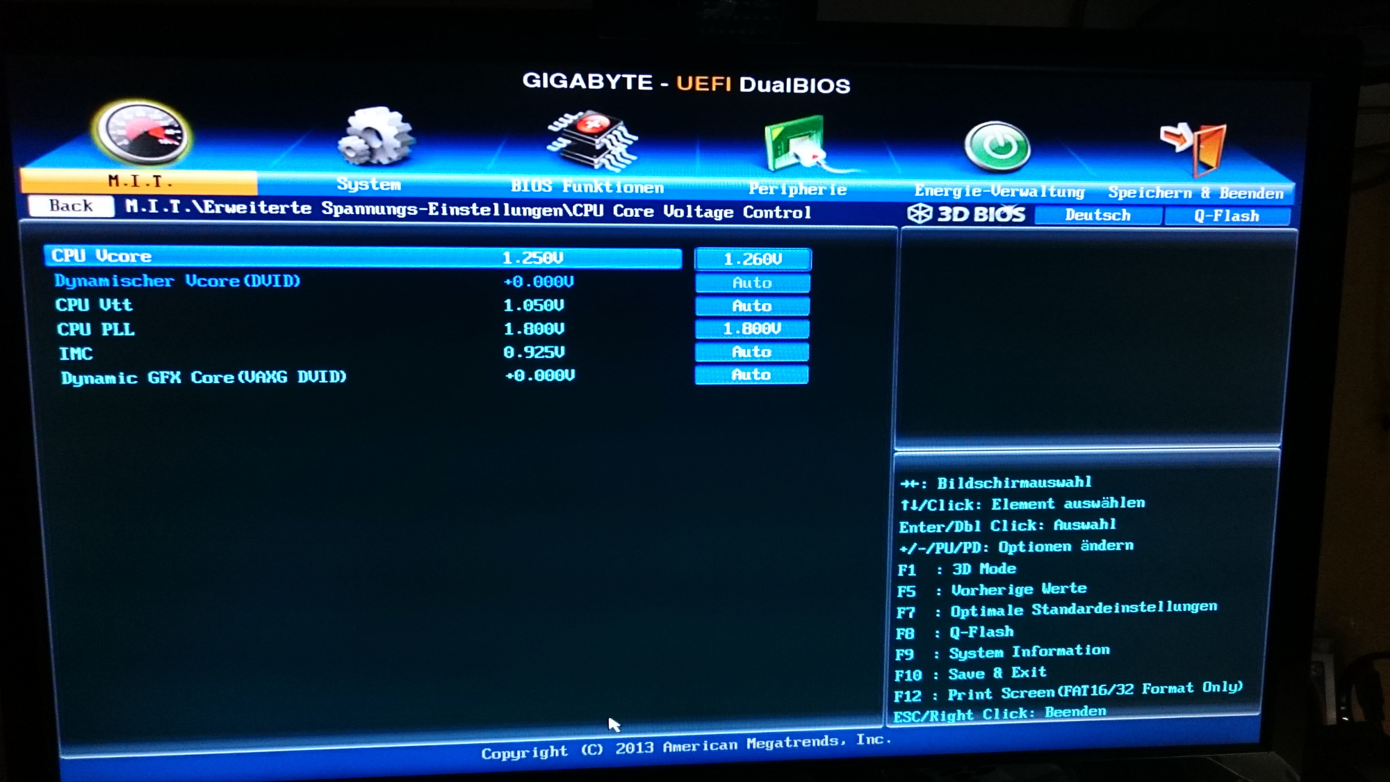 Wie gesagt, das kann alles zunächst auf Auto gestellt werden (außer LLC) und dann entscheidet man, wie man weiter verfährt. Auto bedeutet in dem Fall aktiviert. Auch im unübertakteten, vorgesehenen Zustand ist die dynamische VCore aktivert.Ich werde das mit der dynamischen VCore mal ausprobieren, weiss aber jetzt noch nicht wie ich das einstellen muss, da muss ich mich erst nochmal schlau machen.