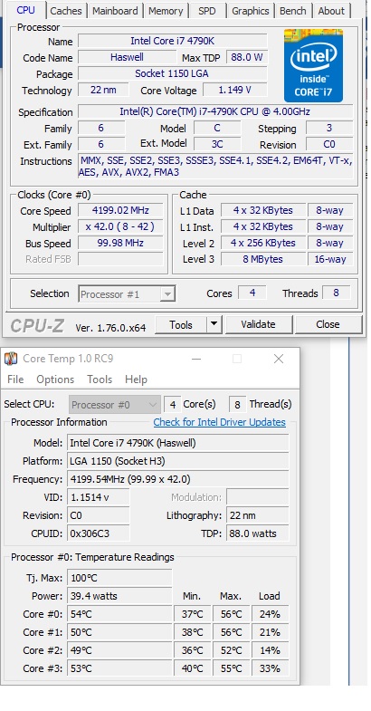 Mal der Reihe nach. Erstmal solltest du Leerlauf Takt und Spannung in Ordnung haben. Du sagtest 1,15 V, das ist zu hoch, daher fragte ich nach dem Leerlauftakt. Das müsste grob gesagt irgend was unter 2000 Mhz und unter 1 V sein. Bevor du das nicht hast, brauchst du dich mit den anderen Sachen nicht beschäftigen.