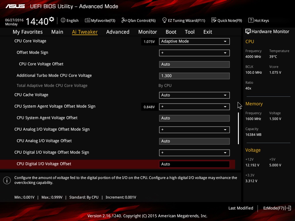 habe die Additional Turbo Mode CPU Core Voltage schrittweise erhöht und es passiert nicht viel^^ Multi 42, LLC Lv1, Vcore IDLE 0.716V, Vcore LOAD 1.183V (Direkt nach dem Start geht die Vcore von 1.15 auf 1.076 und dann auf 0.716V - denke das er da noch kurz "hochfährt" und den Autostart abarbeitet o.ä) Dies habe ich mit 0.1V, 0.2V, 0.5V, 1V, 1.2V und 1.3V gemacht.