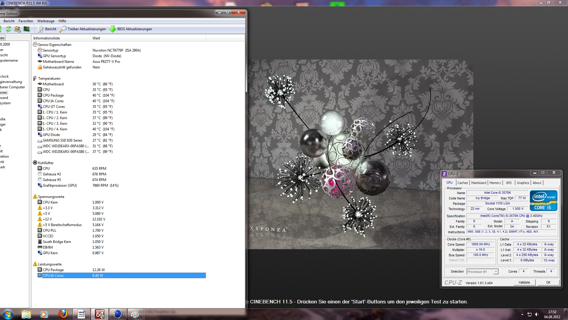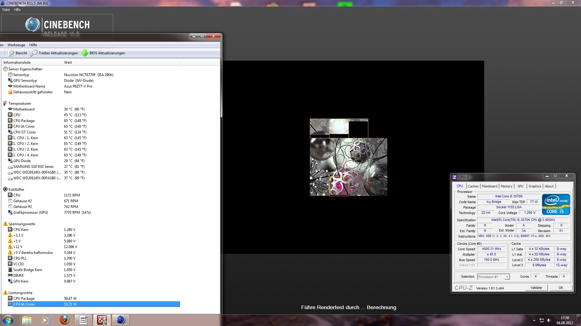 Die Temperaturen für die @4.500 MHz waren meiner Ansicht nach voll in Ordnung, d.h. die CPU wurde nur max. 57°C warm und die max. Kerntemperaturen betrugen Core0: 71°C - Core1: 78°C - Core2: 77°C - Core3: 78°C.