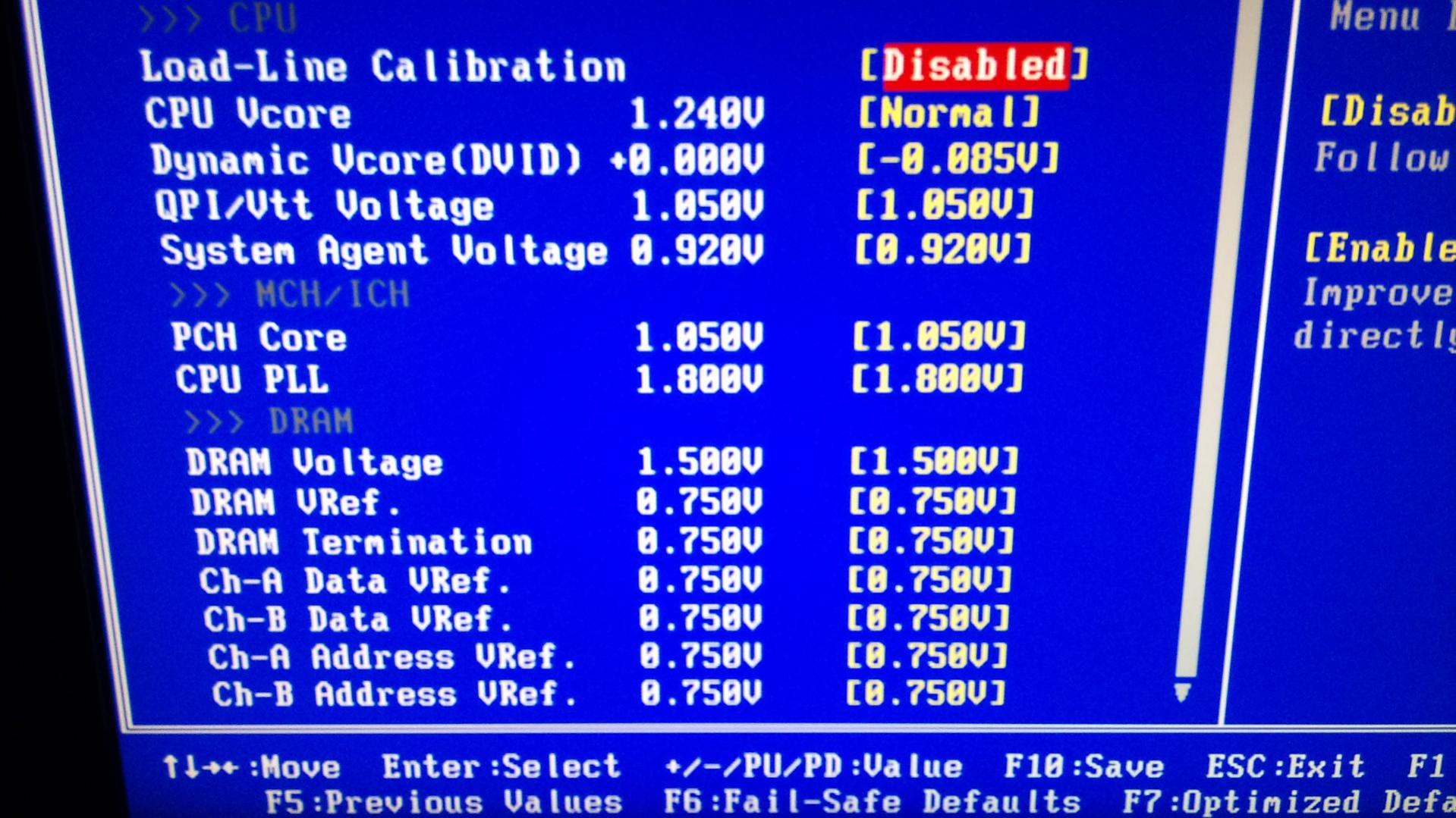 Unter Last geht die Vcore dann auf 1.098V-1.116V runter, je nach Auslastung. Loadlinecalibration ist auf Auto.