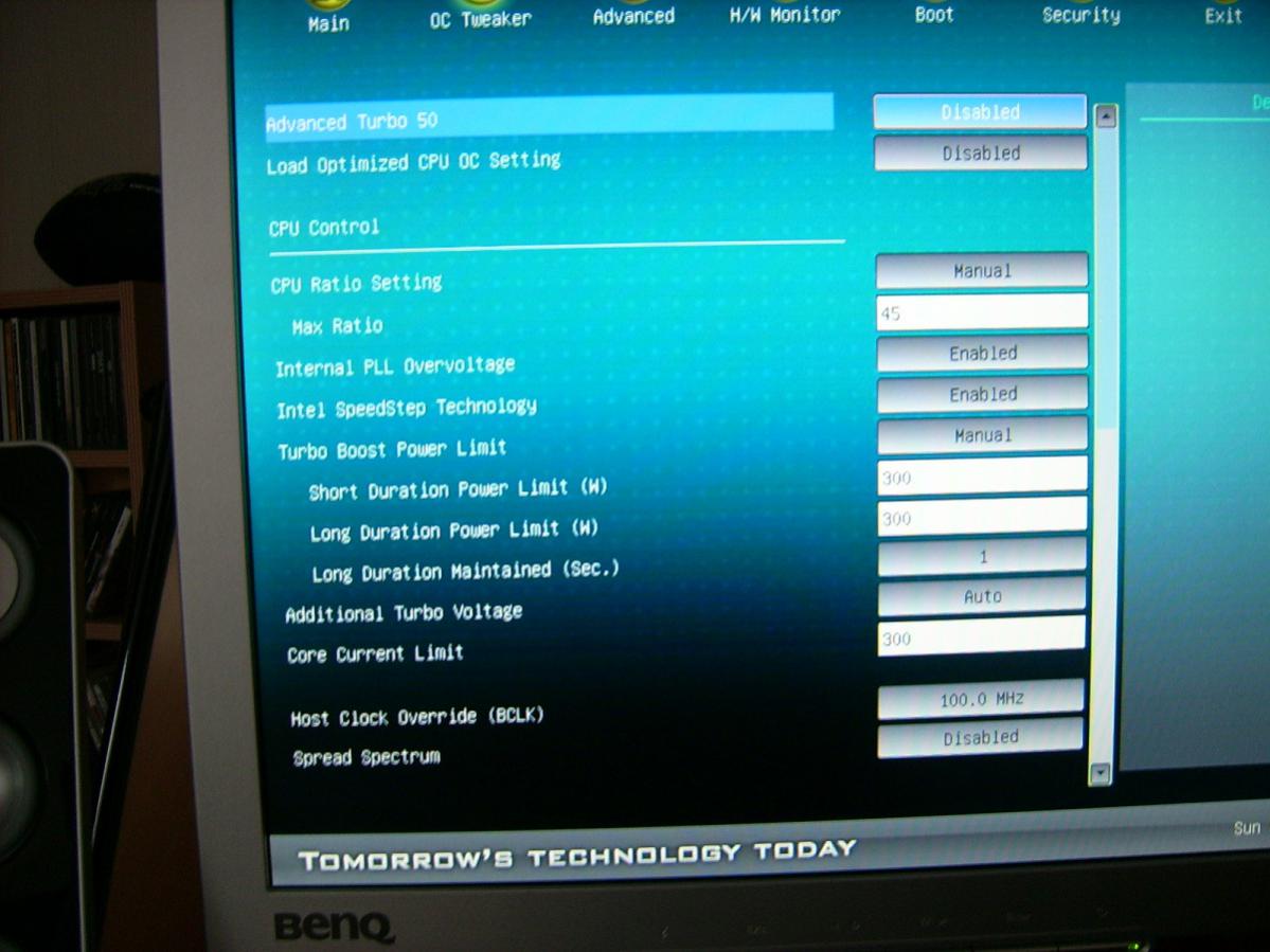 Turbo Boost Power Limit hab ich auf 140/140 gestellt.
