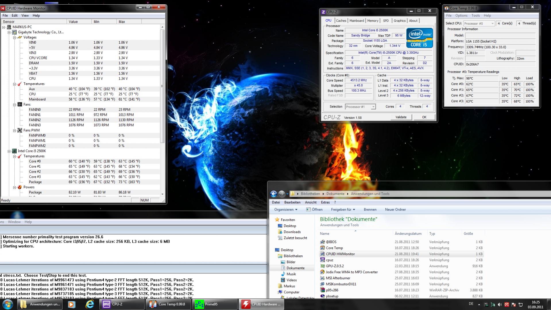und Last bei 4.5 Ghz bei 1.334V (Prime-Stable).
