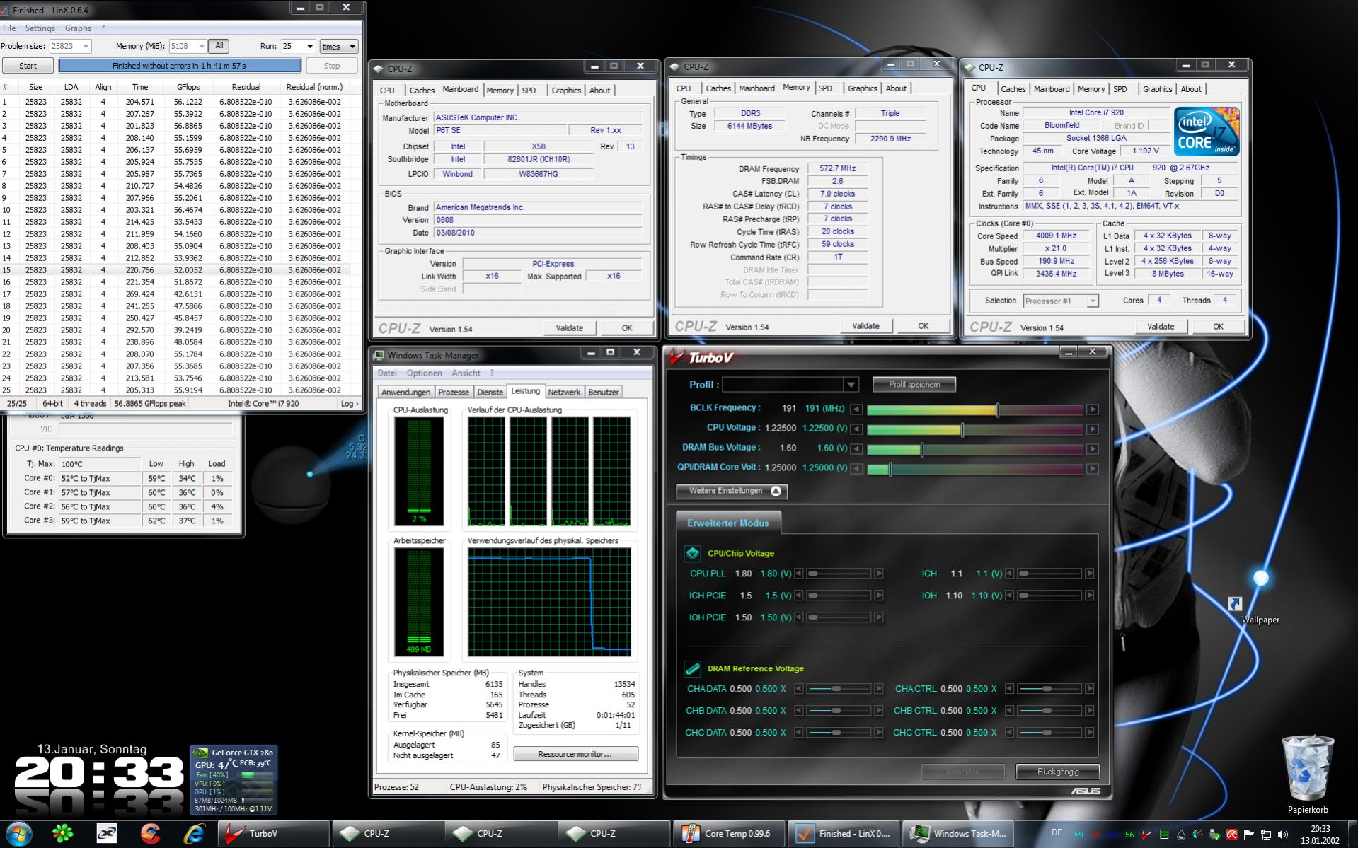 67°C wär wirklich lustig wenns sich auf die Kerne beziehen würde ^^ wie schon gesagt wurde wird der i7 920 mit dem boxed kühler unter standardakt schon 80-90°C warm unter volllast^^
