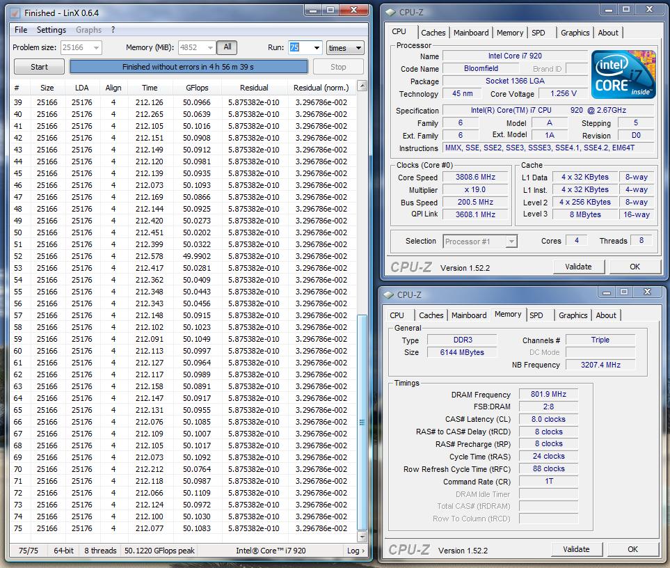 hab mit LinX (v.0.64) mal 10 runs & max memory laufen lassen .war stable und der wärmste kern hatte 74°