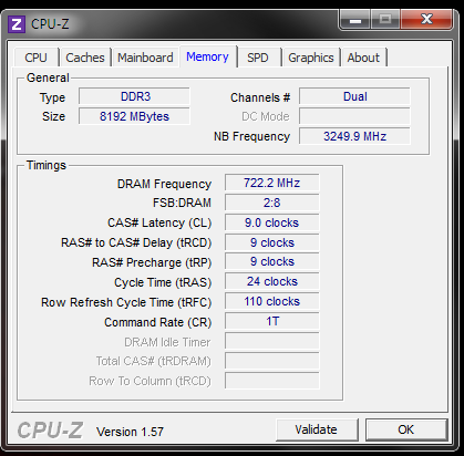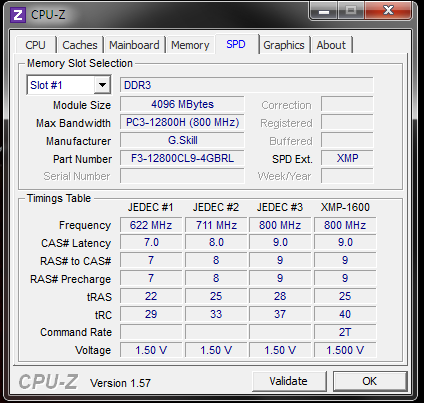 8 GB G.Skill 1600Mhz CL9-9-9-27 1T