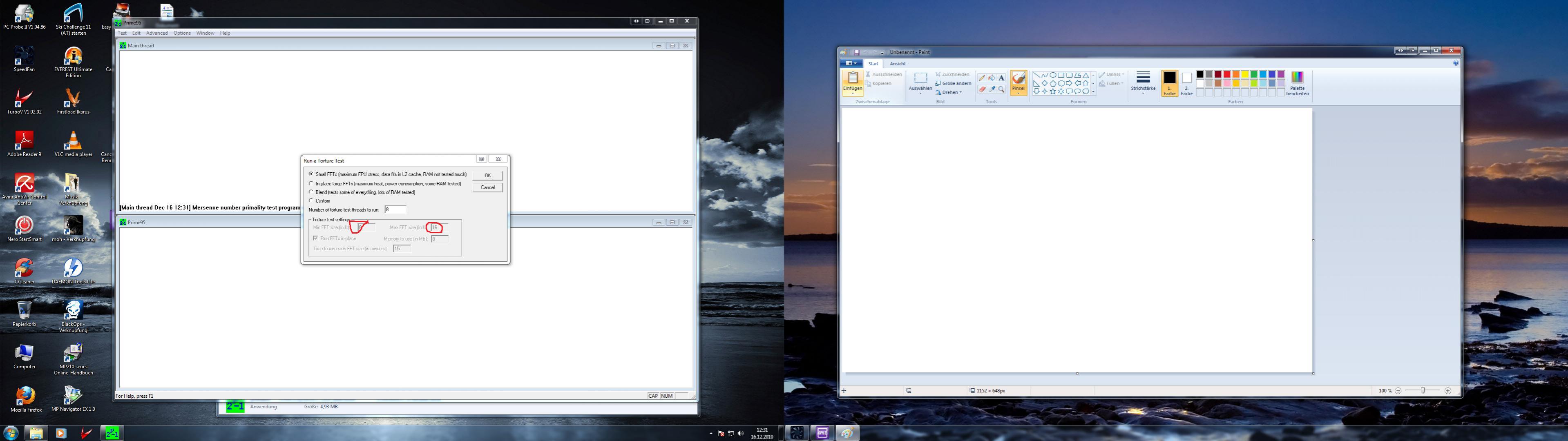 dort wo ich rot eingekreist habe steht beim ersten kästchen normalerweise beim small test 8 und bei zweiten 64 k drinnen und bei mir steht 8-16 wie kann ich das änder das geht bei mir nicht seit dem ich den i7 habe