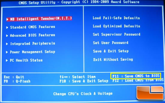 Bei den meisten Gigabyte-Mainboards kann man mit "F11" die BIOS-Einstellungen als Profil abspeichern