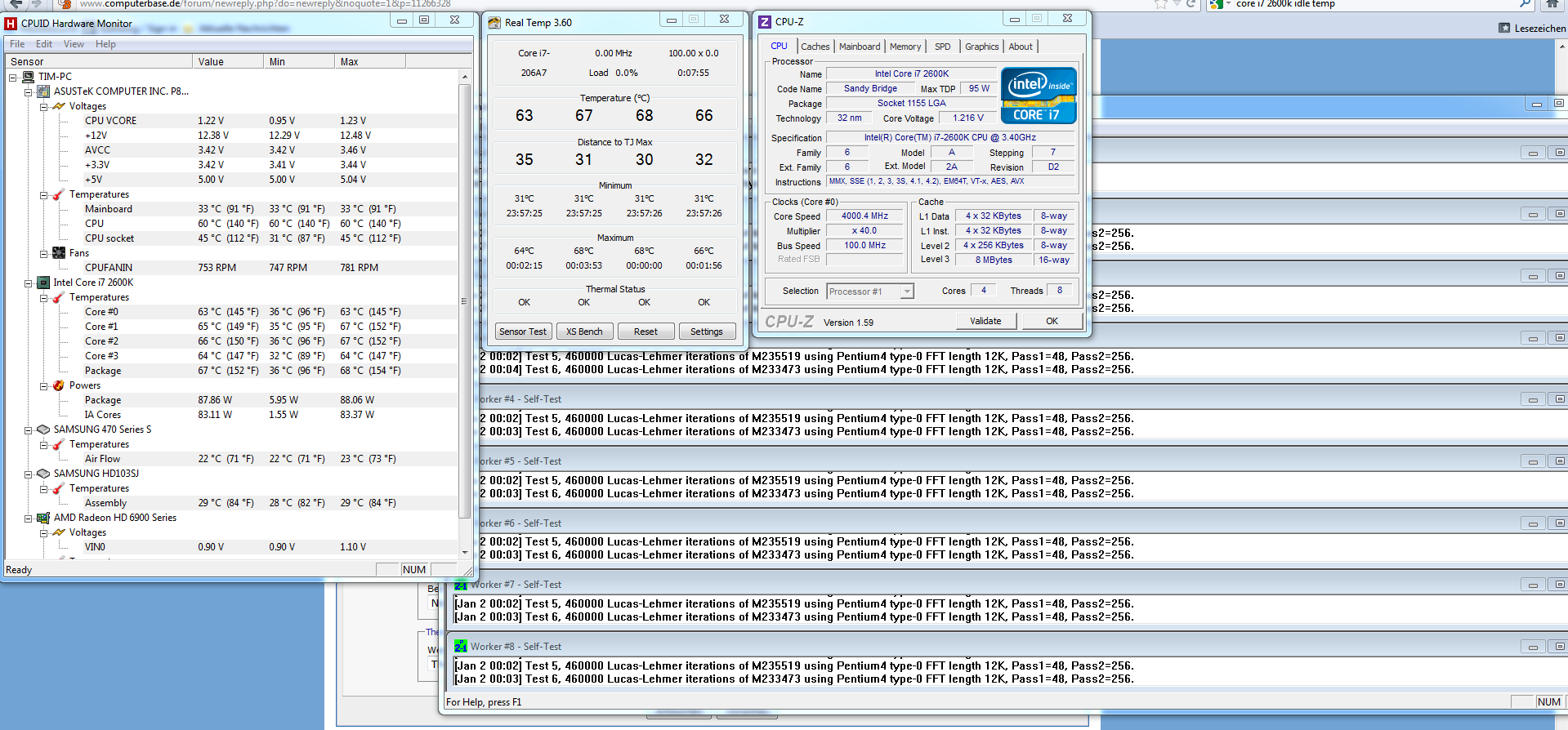 Ich hab einen i7 2600k, läuft auf Standardtakt mit einem Mugen 3 unter Prime auf ca. 53° (Prime 45 Min laufen gelassen, am Ende auf die Temps geschaut). Ist das in Ordnung?