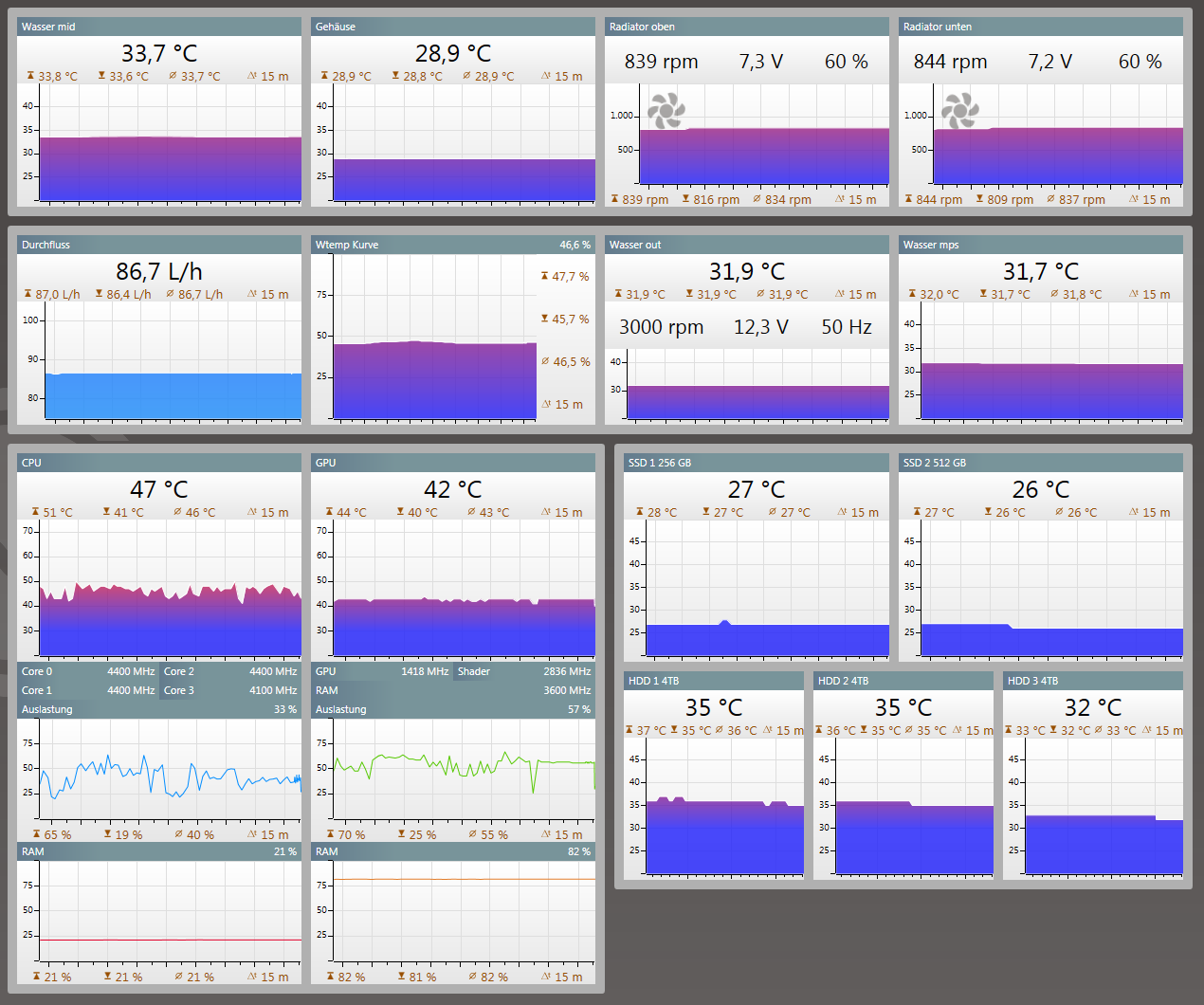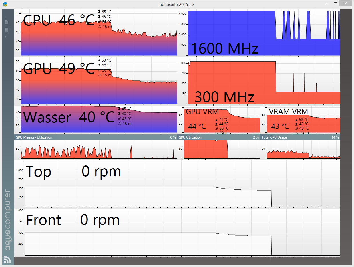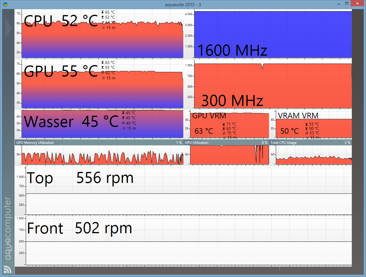 Also mir macht auch vor allem meine CPU Temperatur sorgen, da die immer Höher als die GPU Temperatur ist... Außerdem springt die auch viel mehr herum als die GPU Temperatur... Kann aber auch gut sein, dass ich da einen komischen Sensor in der CPU ausgewählt habe oder bei der Wärmeleitpaste/Waterblock-Montierung gepfuscht habe.