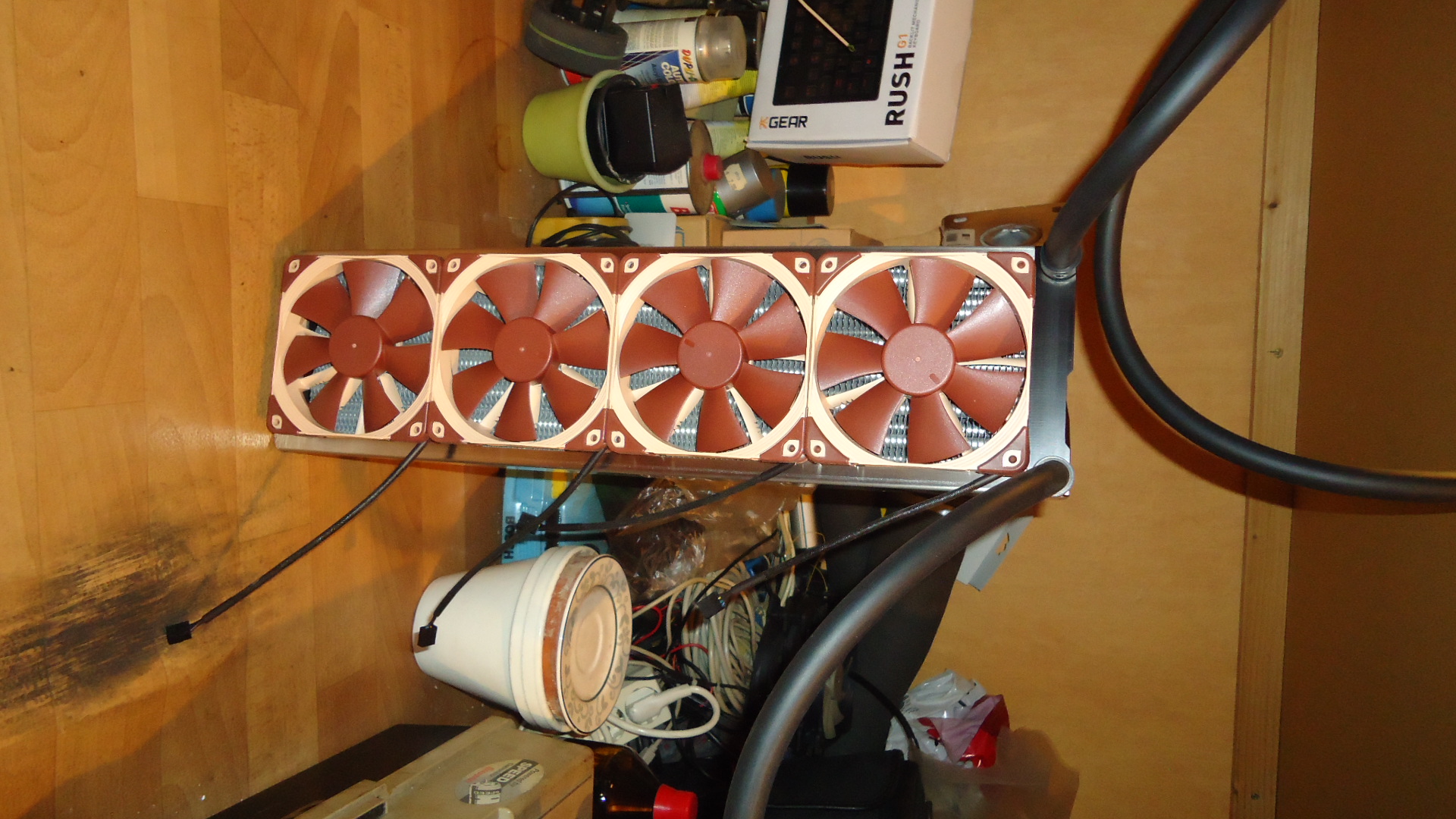 Habe mein System um einen "airplex radical 4/480mm" Radiator extern erweitert. Drauf sind 4 NOCTUA NF-F12PWM und laufen im Idle bis 35° auf 300rpm.