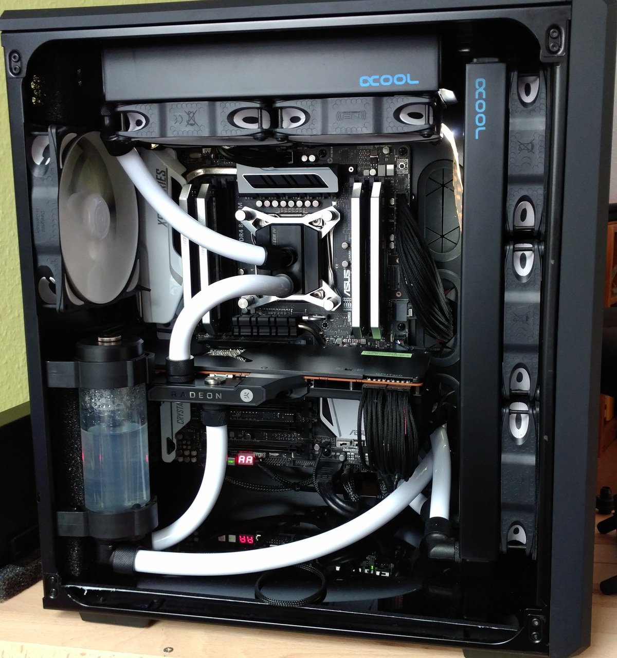 Ich habe mein System vor den Ostertagen umgebaut und meine erste Wasserkühlung verbaut.