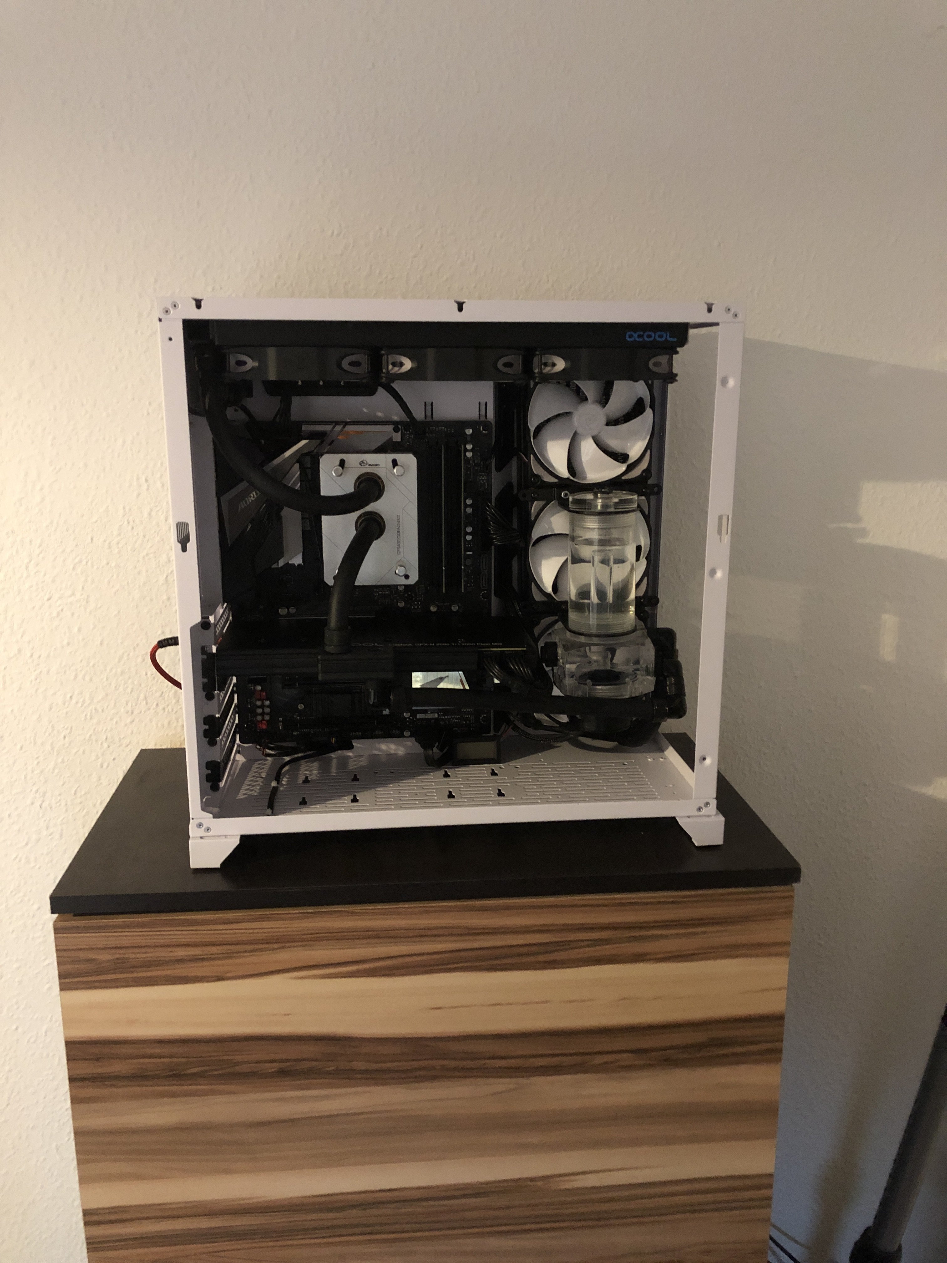 Jup. Und dann auch keine Frischluft für die Radiatoren hilft leider auch nicht bei der Wassertemperatur. Lüfter drehen sollte hier schon deutlich helfen. Ggf. mal mit offenem Case testen.