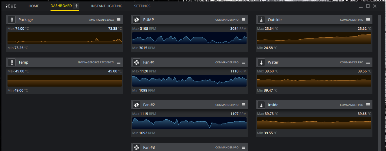 In dem Kreislauf wird ein Ryzen 5 2600 und eine 2070 Super gekühlt. Zimmertemperatur liegt bei 22 grad. Unter Last ( Furmark) habe ich bis zu 40 grad Wassertemperatur, 54 grad GPU Temperatur und 60 grad CPU Temperatur. Lüfter drehen mit 500 Rpm. Mir kommen die Temperaturen recht hoch vor. Sind die normal ?