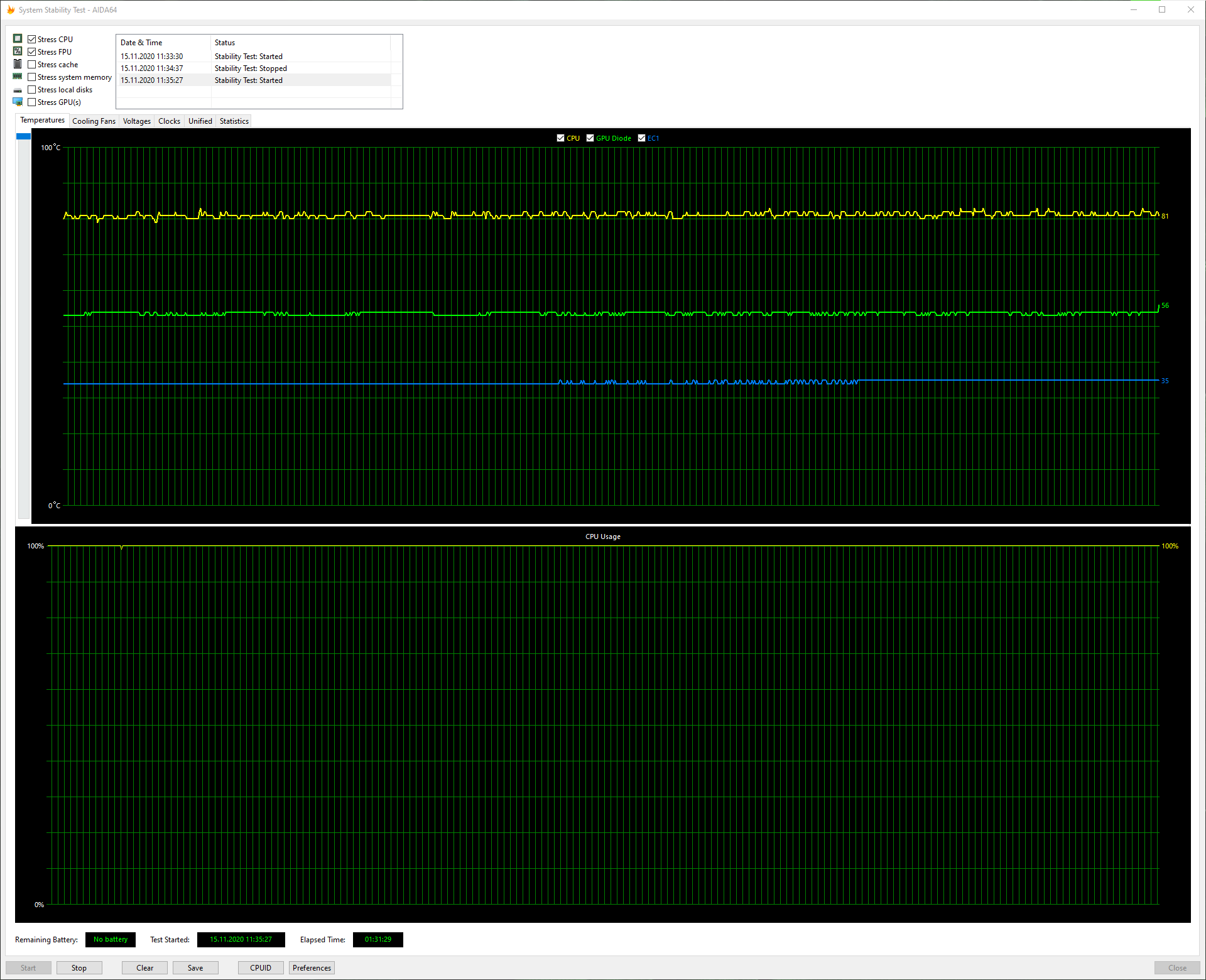 Temps unter Last (p95 smallest & Furmark):