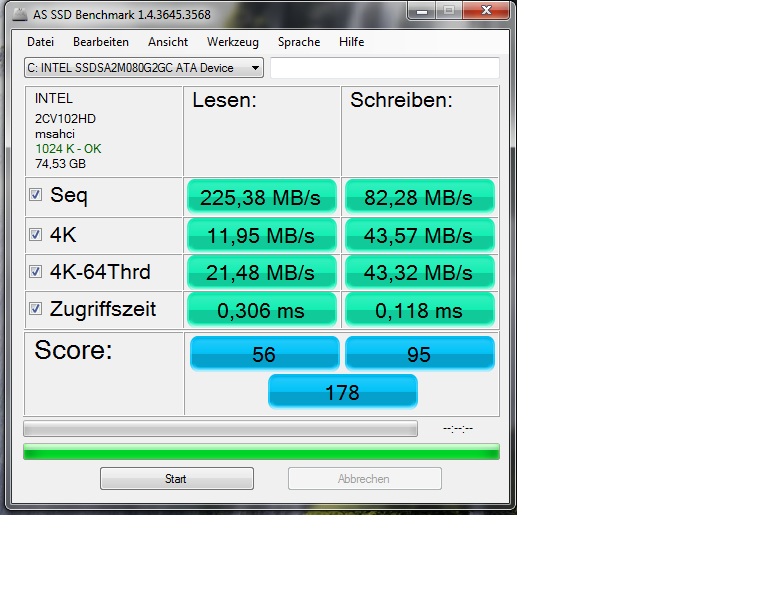 - ohne OS drauf und mit blanker SSD war der Speed wieder gut: