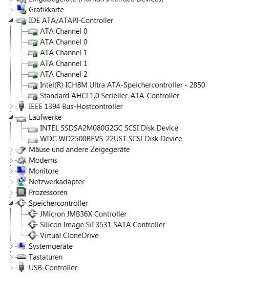 Wenn du das Bild oben von meinem Geräte Manager siehst, merkst du das der Controller für die Festplatten zuständig ist.