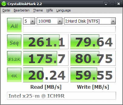 Also die Falcon II mit Barefoot und Intel-Flash hat bei mir auch im AS SSD Benchmark minimal bessere Werte als eine Ultradrive GX geliefert.