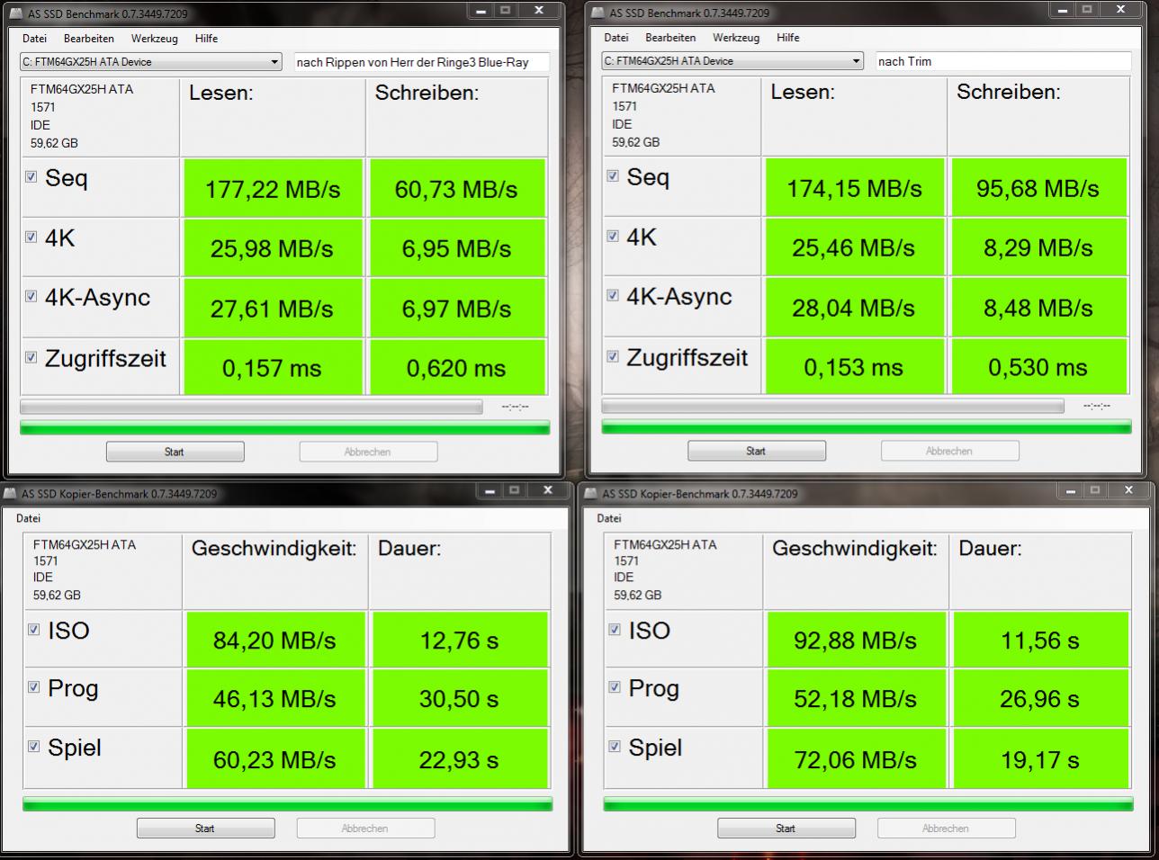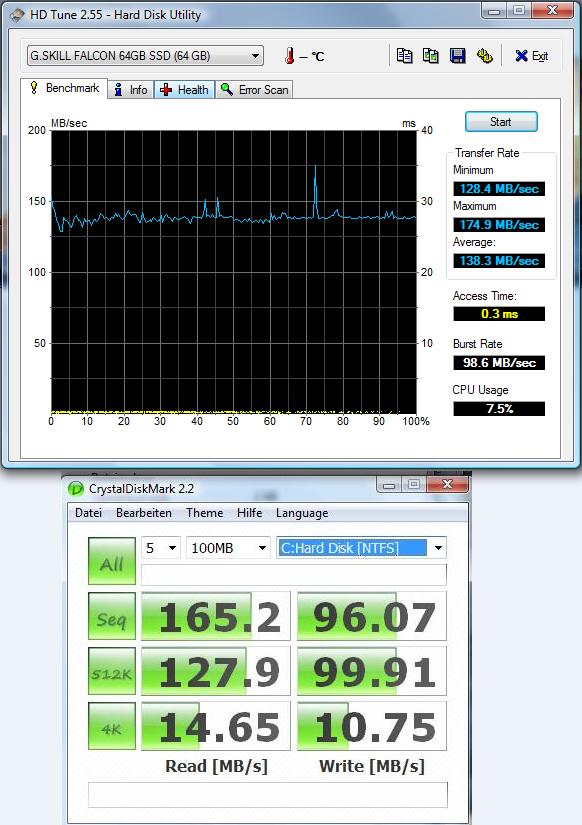 --> Benchmarks entsprechen manchmal nicht der Realität. Und: Der SATA-Controller spielt eine große Rolle. Von daher würd ich mich nicht verrückt machen, wenn die Benchmarks(!) nicht die besten sind.