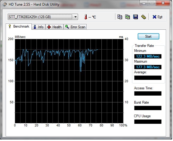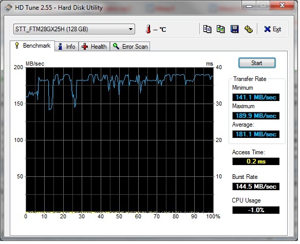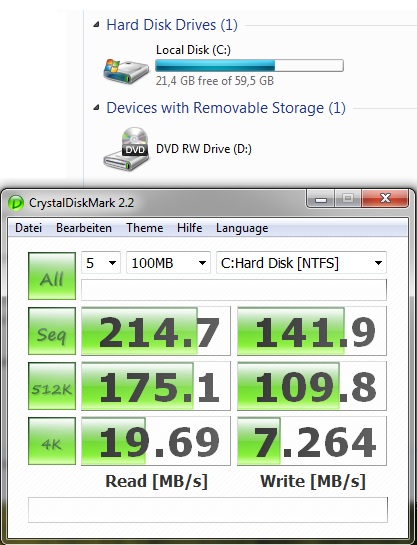 Interessant ist, dass trotz Einsatz in einem Notebook (vermutlich SATA1) Raten über 150MB/s