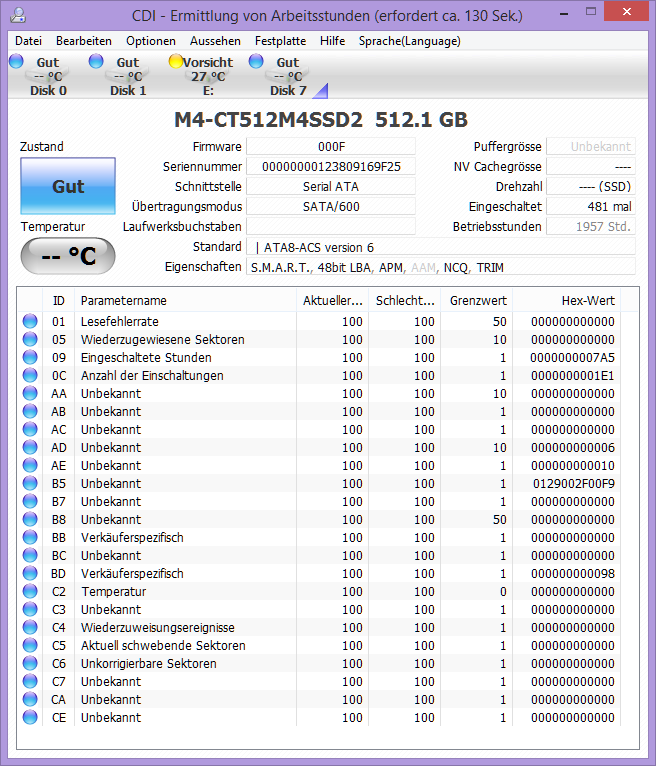 Ich werd mal schauen ob sich die M4 jetzt nach dem Betrieb an einem anderen SATA Port wieder meldet (vorher hatte ich sie nur an einem USB Adapter). Wenn nicht wird eine Evo bestellt.
