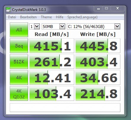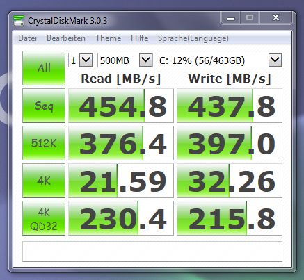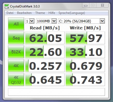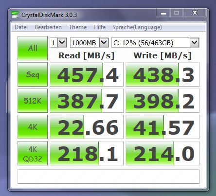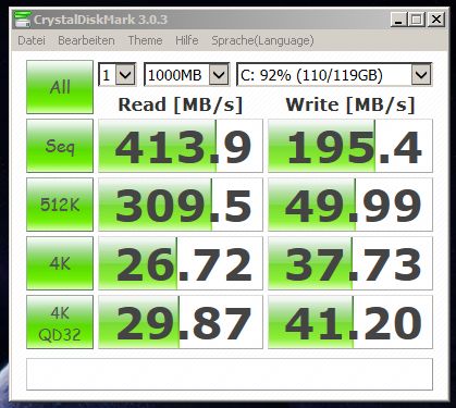Wenn der Klonprozess fertig ist schaltet sich das Gerät aus, man baut die neue SSD ein und die alte HDD aus. Das wars. Bei mir gings ohne Fehler, hoffe das ist bei Euch auch so. Hier noch einige Werte, die ich spasseshalber gemessen habe...