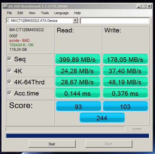 4. Hier die alte Crucial m4/128 GB, die in meinem Bürorechner (siehe Sig) arbeitet (zum Vergleich zur neueren MX100)