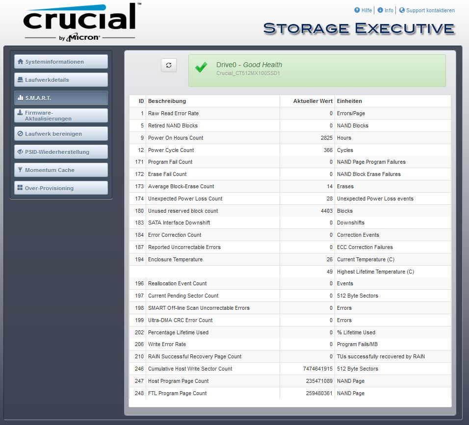Mr.Seymour Buds, die Werte sind in Ordung und das Datenkabel war es wohl auch nicht, denn es gibt keine Ultra-DMA-CRC Fehler. Probiere es mal ein FW Update, denn die neusten FW ist die MU03 für die MX200 (war ein Versehen, es geht um die MX100), deren Changelog zeigt mal wieder, dass es Verbesserungen im Zusammenhang mit dem Energiespareinstellungen gab: